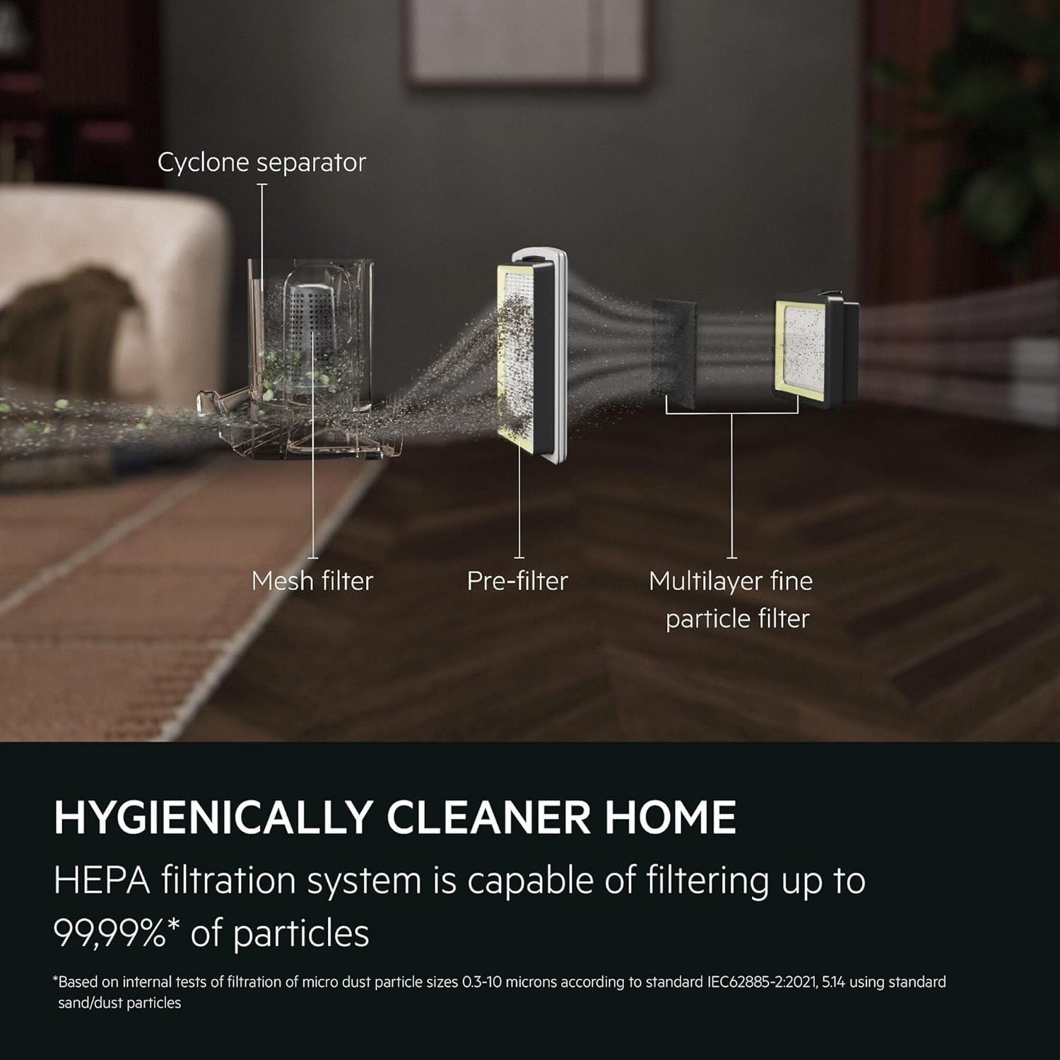 The AEG ANIMAL 5000 Bagless Vacuum Cleaner delivers powerful suction performance and hygienic cleaning for every floor type. Designed with high filtration technology, it captures up to 99.99% of fine dust and allergens for cleaner output air. The compact, ergonomic design allows effortless manoeuvrability while maintaining strong suction. With an 8.5-metre action radius and a 3L dust capacity, you can clean more space with fewer interruptions.
