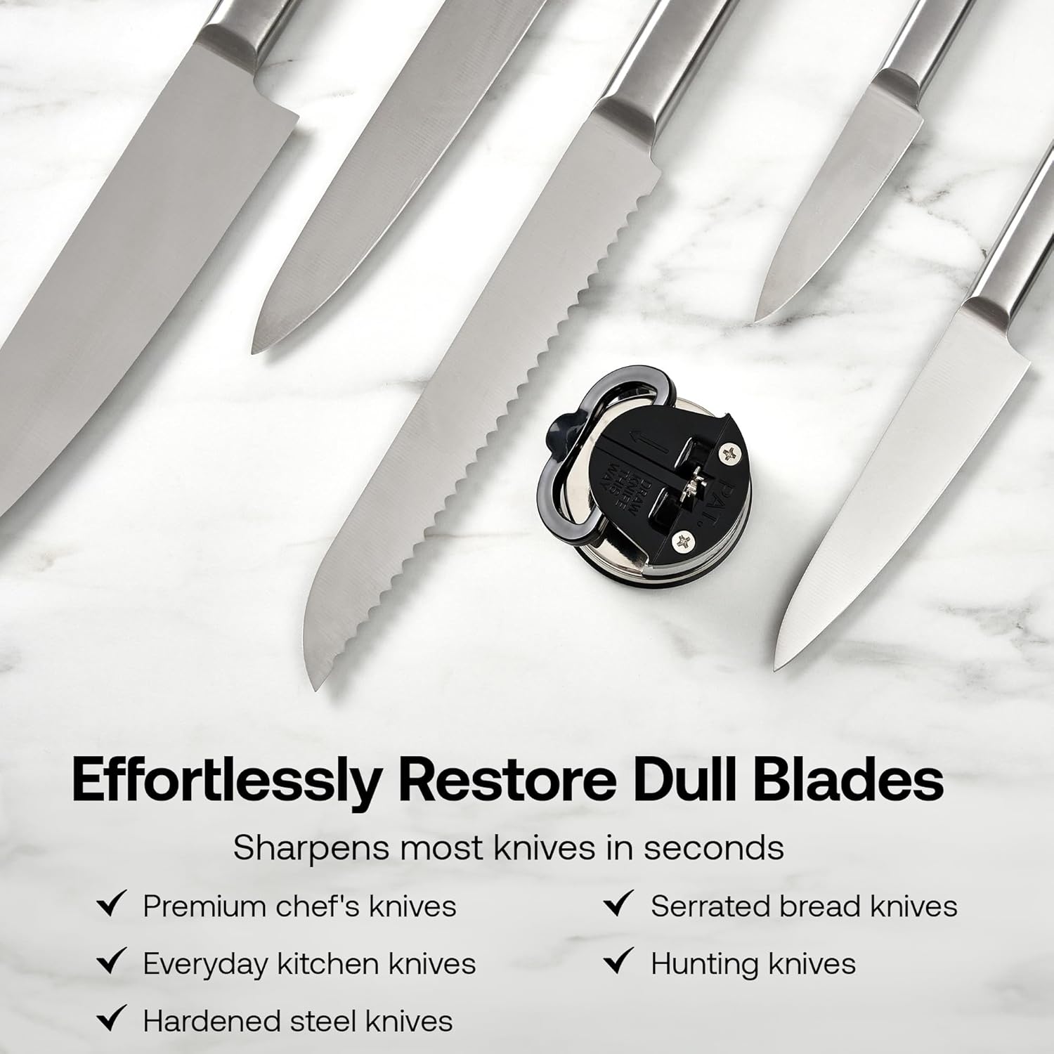 Its innovative design positions the knife at the perfect sharpening angle, ensuring consistent performance every time. Ideal for home cooks and professionals alike, this tool is small enough to store easily yet powerful enough to revive even dull blades.