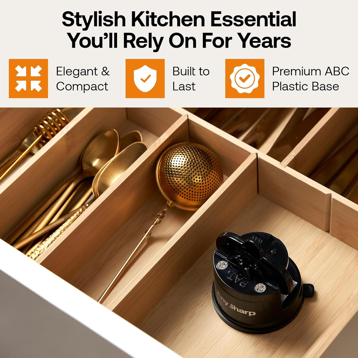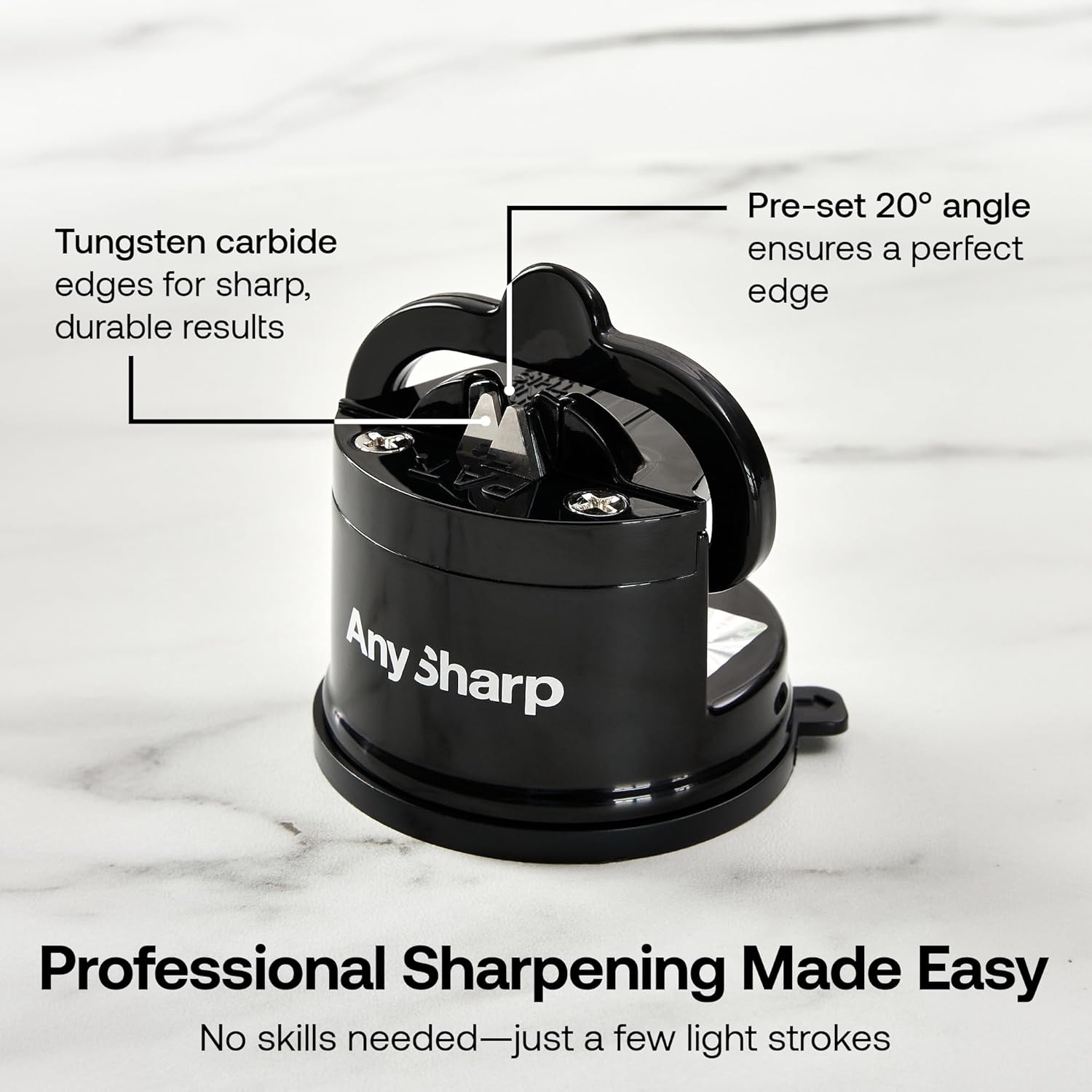 With its compact size, durable build, and modern black finish, this sharpener is both functional and stylish. Whether you’re slicing vegetables, carving meat, or prepping bread, the AnySharp Knife Sharpener ensures smooth, effortless cutting for years to come.
