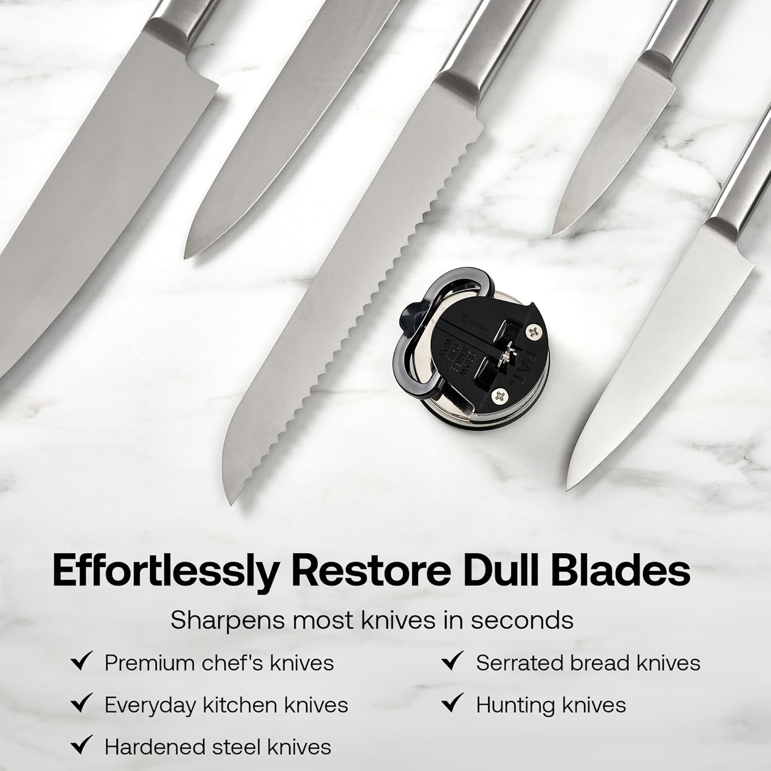 Our AnySharp Pro Metal Knife Sharpener combines professional performance with safety and convenience. Featuring a PowerGrip suction base, it securely attaches to any smooth surface, enabling hands-free, stable sharpening.
