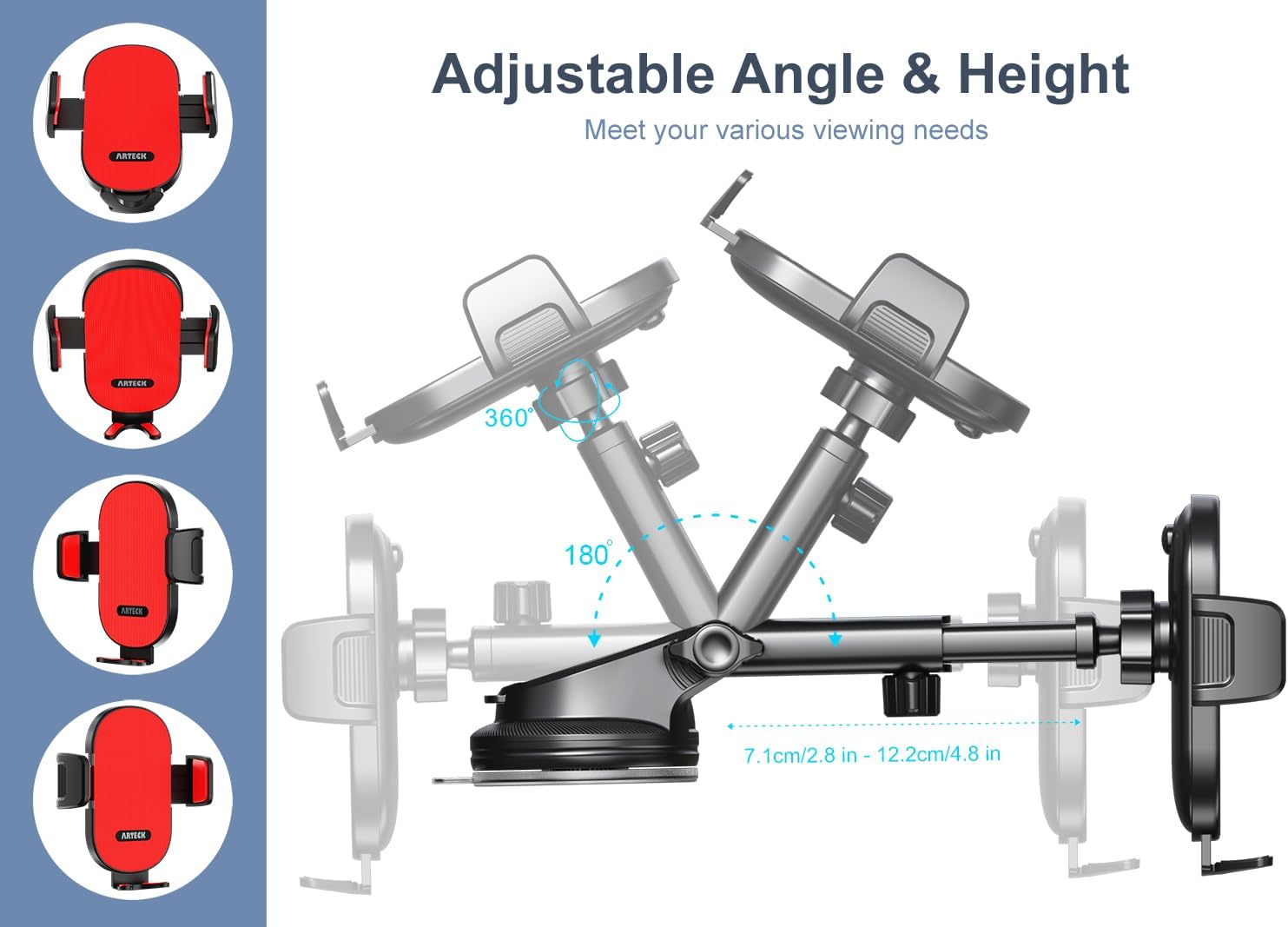 Experience ultimate convenience on every drive with the Arteck Universal Car Mount Holder. Designed for modern smartphones, this versatile 360° rotating phone holder offers secure mounting on both your car windshield and dashboard. Crafted with premium reinforced rubber and durable plastic, it delivers exceptional stability even on rough roads. The strong sticky gel pad ensures your device stays firmly in place, yet can be removed effortlessly without leaving marks.
