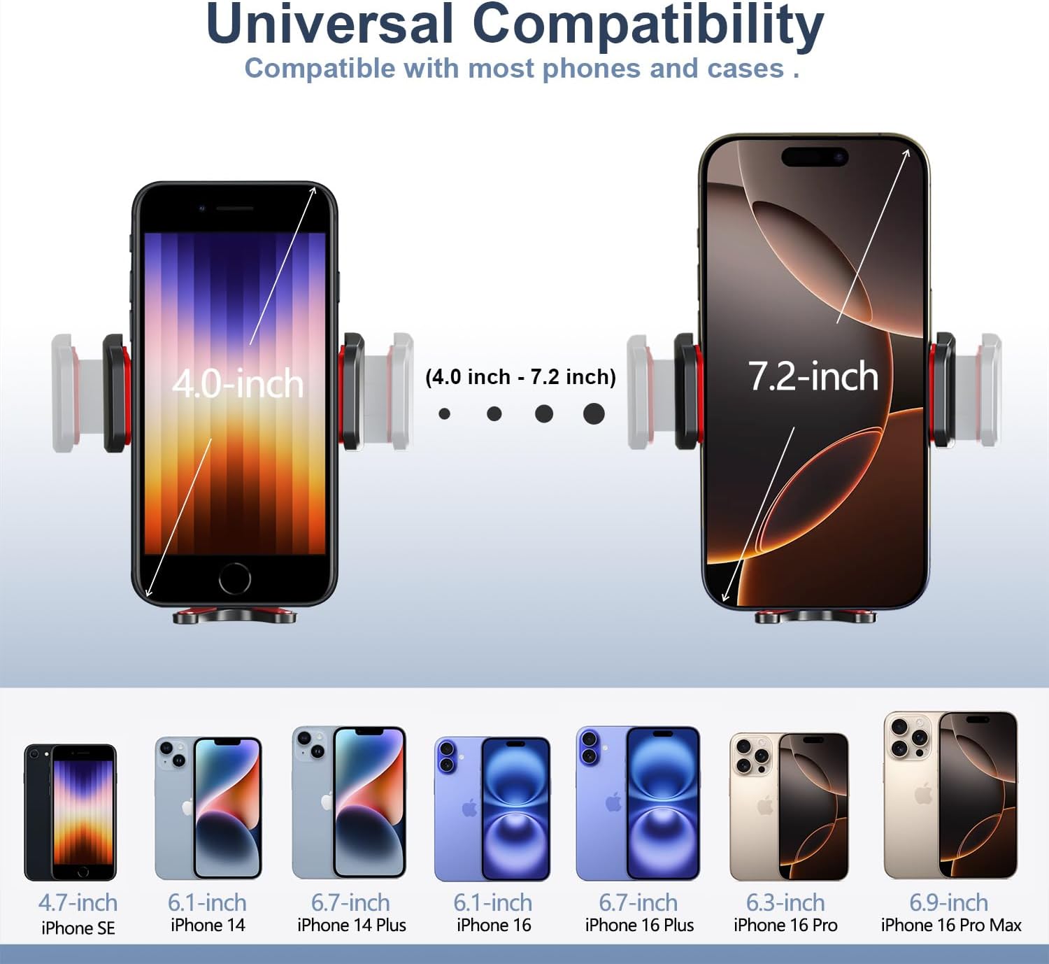 Enjoy hands-free navigation, video calls, and music control while keeping your focus on the road. With its universal compatibility, this mount perfectly fits all major smartphones including iPhone 15, 14, 13, 12, 11, SE, Samsung Galaxy, and Android GPS devices. Its compact, lightweight design makes installation quick and storage simple—ideal for drivers seeking performance, practicality, and long-term reliability.