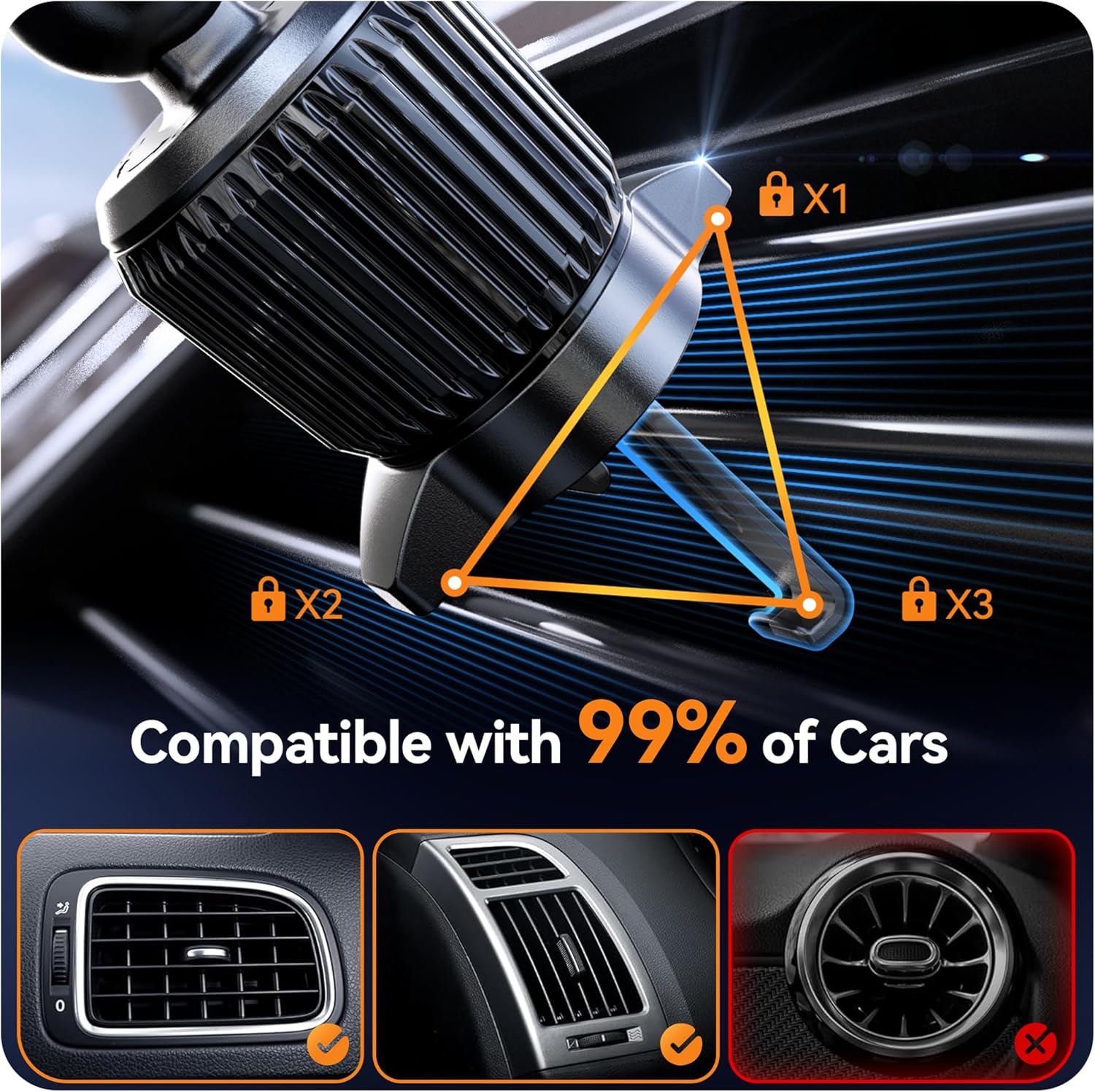 | Applications | Vehicle air vent mount for wireless charging |