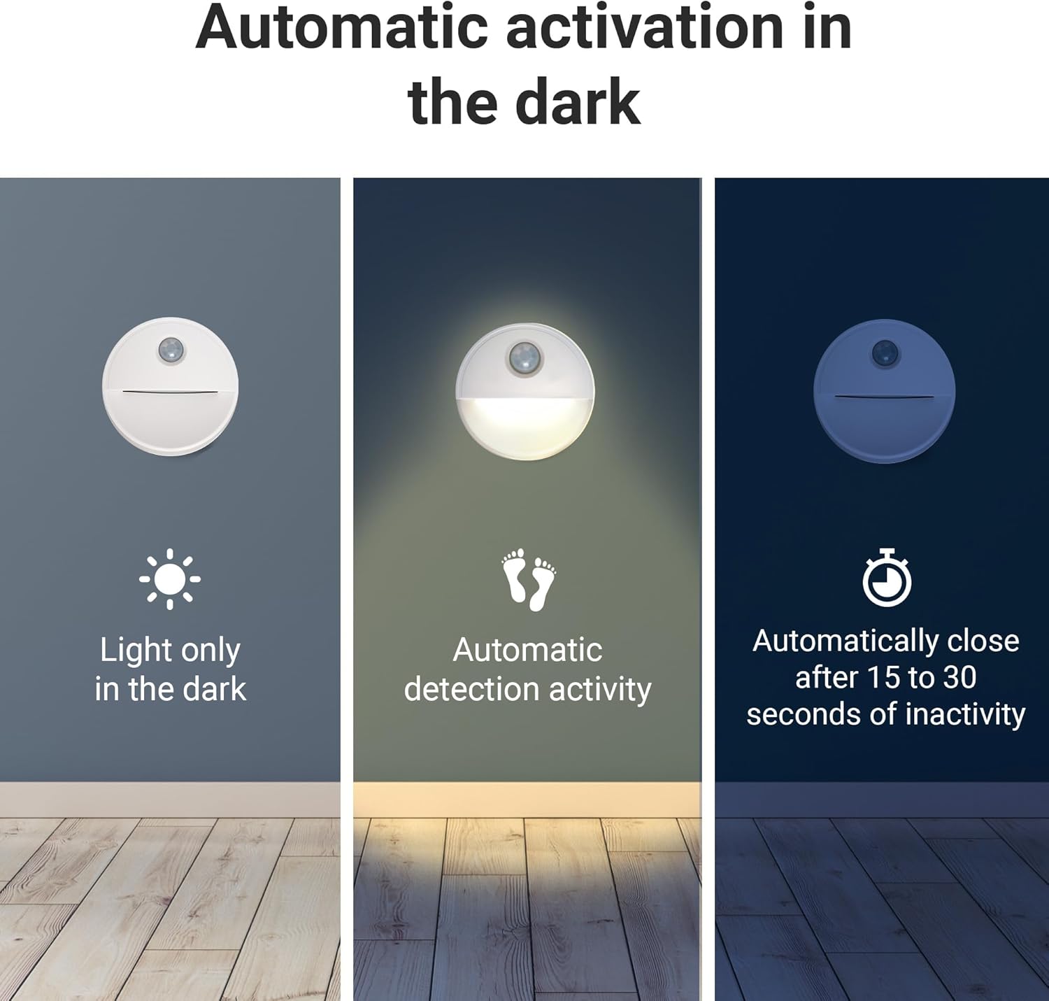 Illuminate your home effortlessly with these Battery-Powered Motion Sensor Night Lights. Designed with advanced PIR motion detection, these compact LED lights automatically switch on in the dark when movement is detected, and turn off within 15–30 seconds to save energy. Their seamless, polished white finish complements any modern décor, while the warm white glow creates a calming and safe environment.
