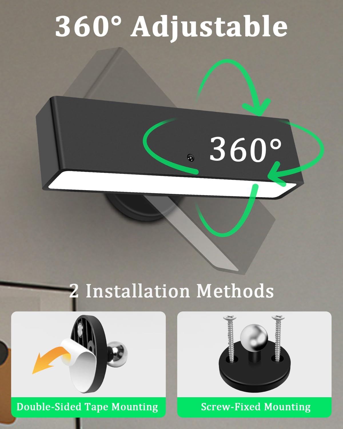 Whether used in bedrooms, hallways, balconies, kitchens, or as stylish accent lighting, these stick-on wall lights deliver bright, flicker-free illumination with three adjustable colour temperatures. Easy to install with adhesive pads or screws, they are perfect for renters and homeowners alike. Durable ABS and alloy steel construction ensures long-lasting performance, while the compact modern design in polished black complements any décor.