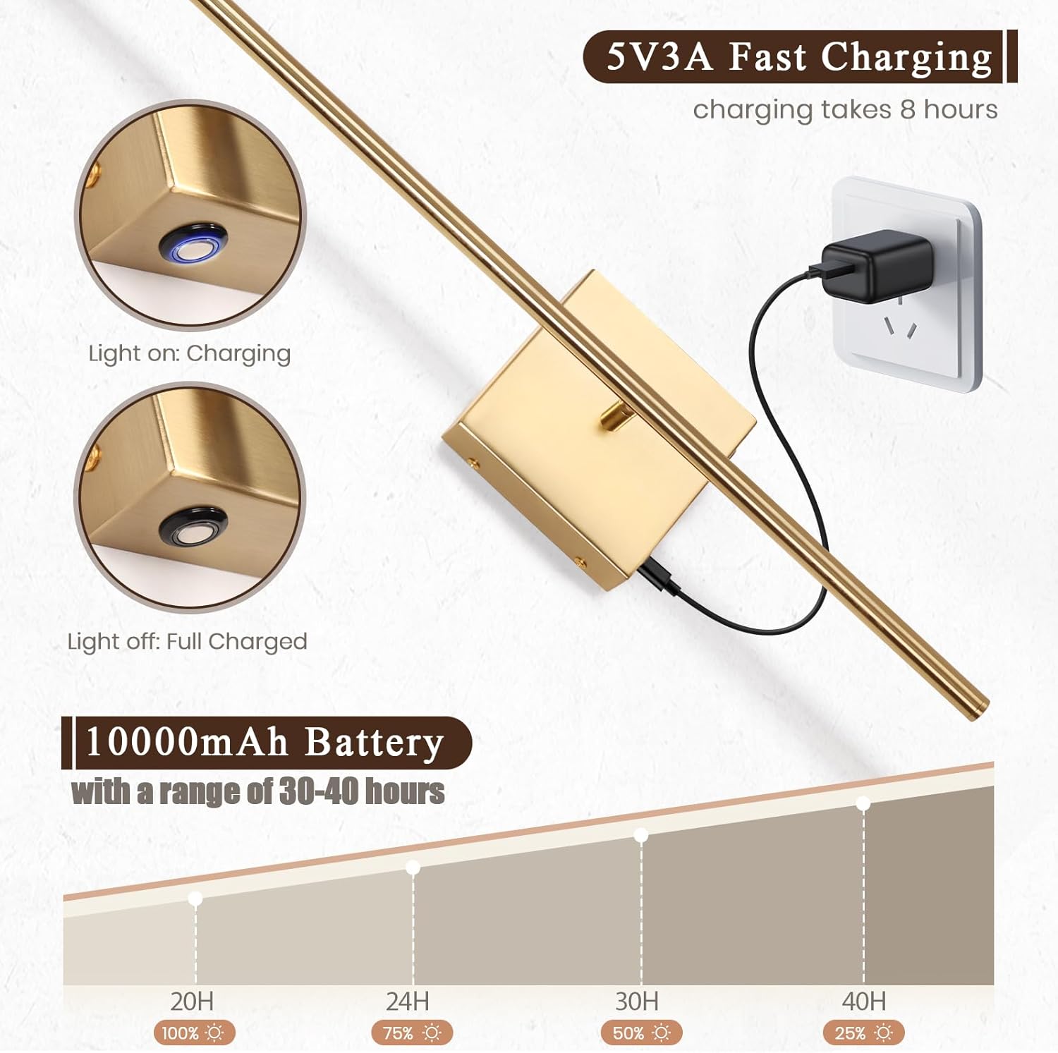 Our Battery Operated Wall Lights Indoor offer a stylish, wireless, and convenient lighting solution for your home. Designed with a sleek gold modern finish and a 70cm size, these LED wall lamps bring both elegance and practicality to your living space. Featuring USB rechargeability, remote & touch control, and a 10000mAh battery that provides up to 30–40 hours of continuous lighting, these sconces are perfect for bedrooms, living rooms, hallways, and more. With dimmable brightness and no wiring required, they’re the ultimate hassle-free wall lighting solution.