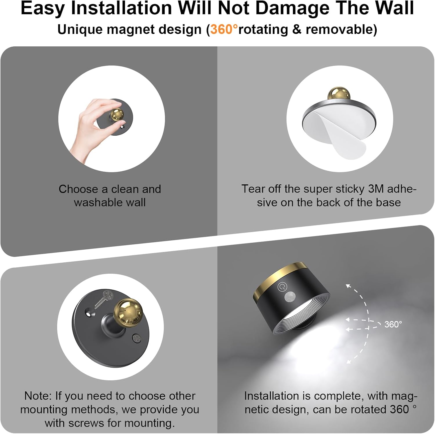 Our battery operated LED wall light offers flexible and modern indoor lighting with a rechargeable 3500mAh battery and magnetic wall-mounted design. Designed for convenient wireless use, this wall lamp supports touch and remote control operation, multiple colour temperatures, and RGB lighting options to suit different moods and environments. With 360° free rotation, dimmable brightness, and easy removal for charging or portable use, it delivers reliable, eye-protective illumination for bedrooms, cabinets, corridors, and living spaces.