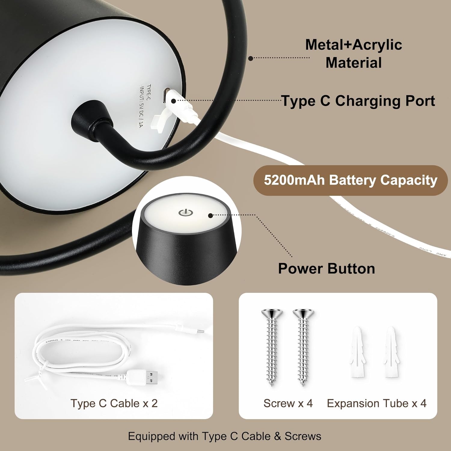 - Rechargeable battery operated wall lights with built-in 5200mAh battery