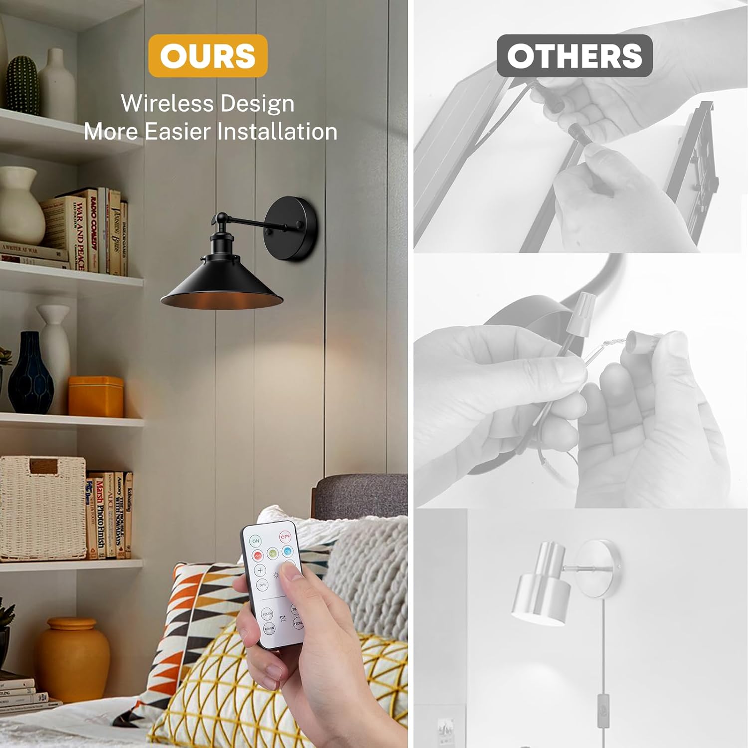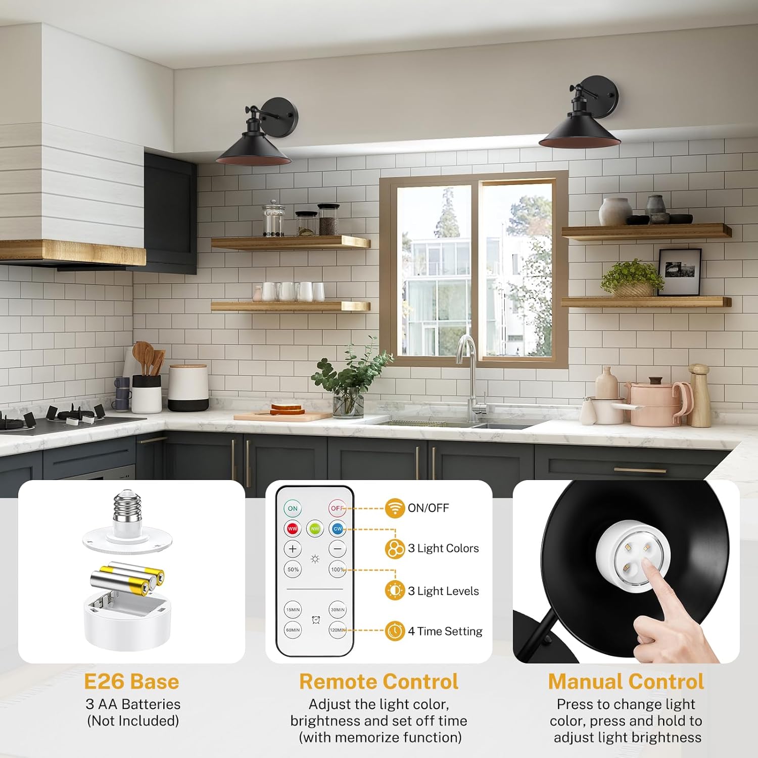 Our battery operated wall light set of two provides flexible, wireless indoor lighting designed for living rooms, bedrooms, and hallways, offering easy wall-mounted installation without the need for wiring or professional tools. Powered by three AA batteries per light and featuring LED illumination with 800 lumens output, these industrial-style wall sconces deliver adjustable brightness and three selectable colour temperatures, allowing you to tailor the ambience from warm white to cool white for both decorative and functional lighting.
