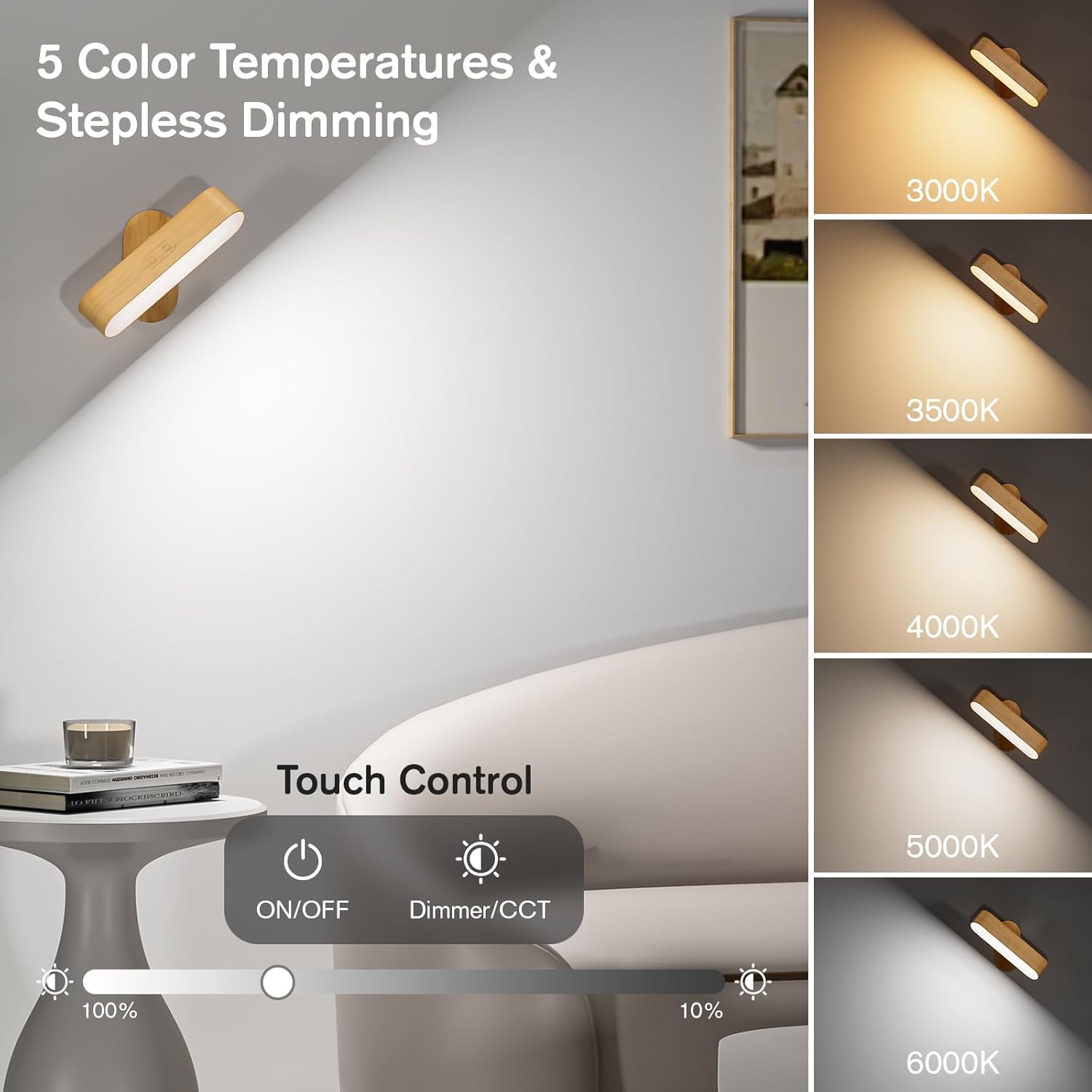 Our battery operated wireless wall sconces offer a flexible and stylish lighting solution for bedrooms, living rooms, pictures, and modern interiors without the need for wiring. Powered by a high-capacity 5000mAh rechargeable battery, each LED wall sconce provides long-lasting illumination from 12 to 150 hours depending on brightness, with quick USB-C recharging in just 3–4 hours. Designed with dual touch controls, these wall lamps allow easy adjustment of colour temperature and smooth dimming to create the ideal ambience. The magnetic 360° rotatable structure enables precise light direction and simple detachment for portable use, while multiple mounting options ensure convenient installation on walls or flat surfaces. Combining modern design with practical performance, these rechargeable wall lights deliver reliable, eye-caring illumination for everyday use.