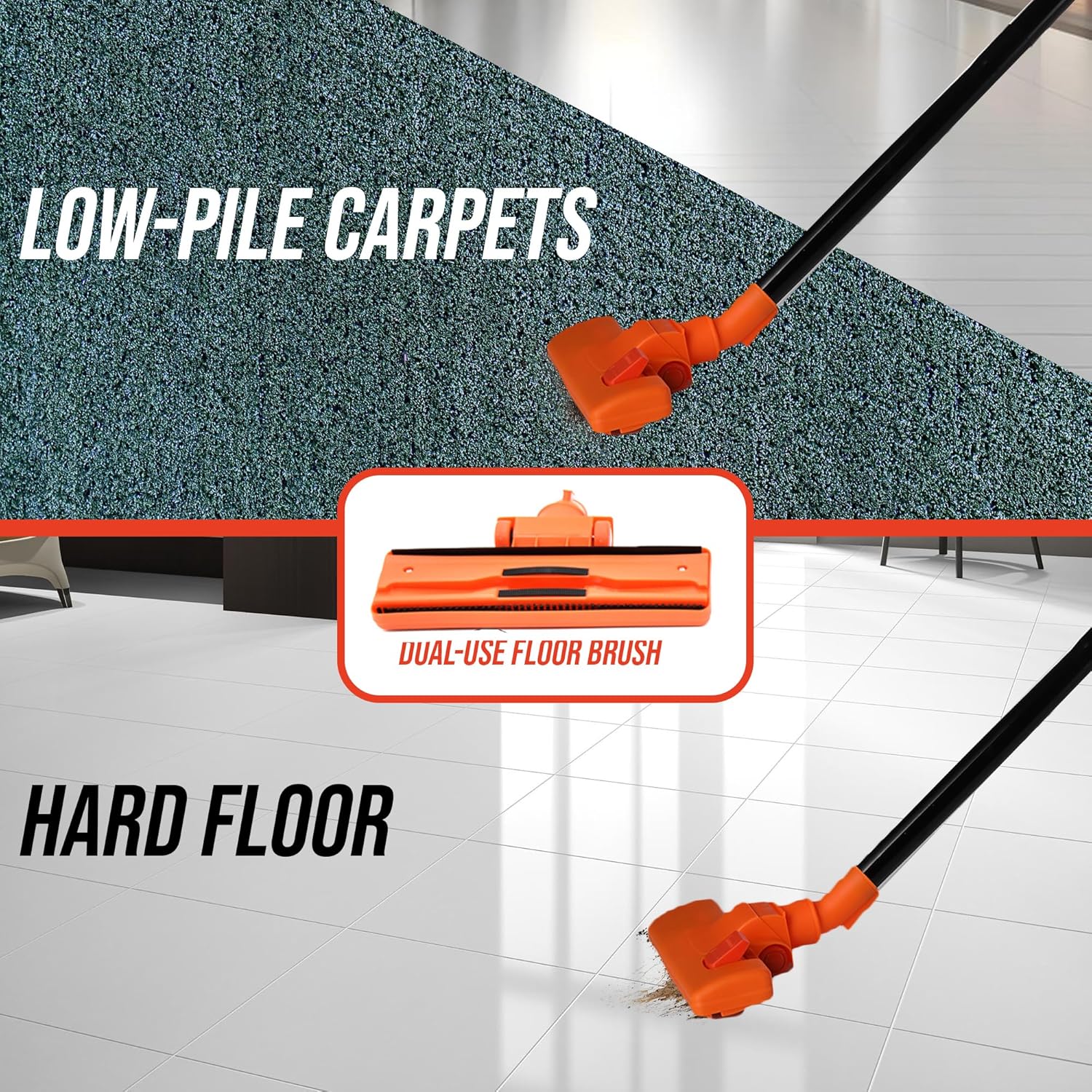 - Equipped with crevice tool, dusting brush, and suction rubber flap.