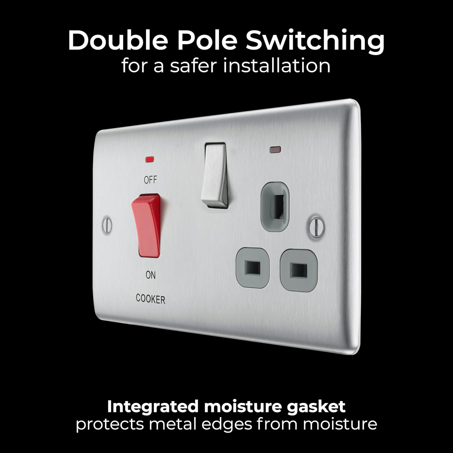 The addition of the socket is convenient - it allows you to plug in small kitchen appliances without needing to reach for another outlet. The design is practical, with enough spacing to use both the switch and the socket comfortably, and the finish is clean with no rough edges or gaps.