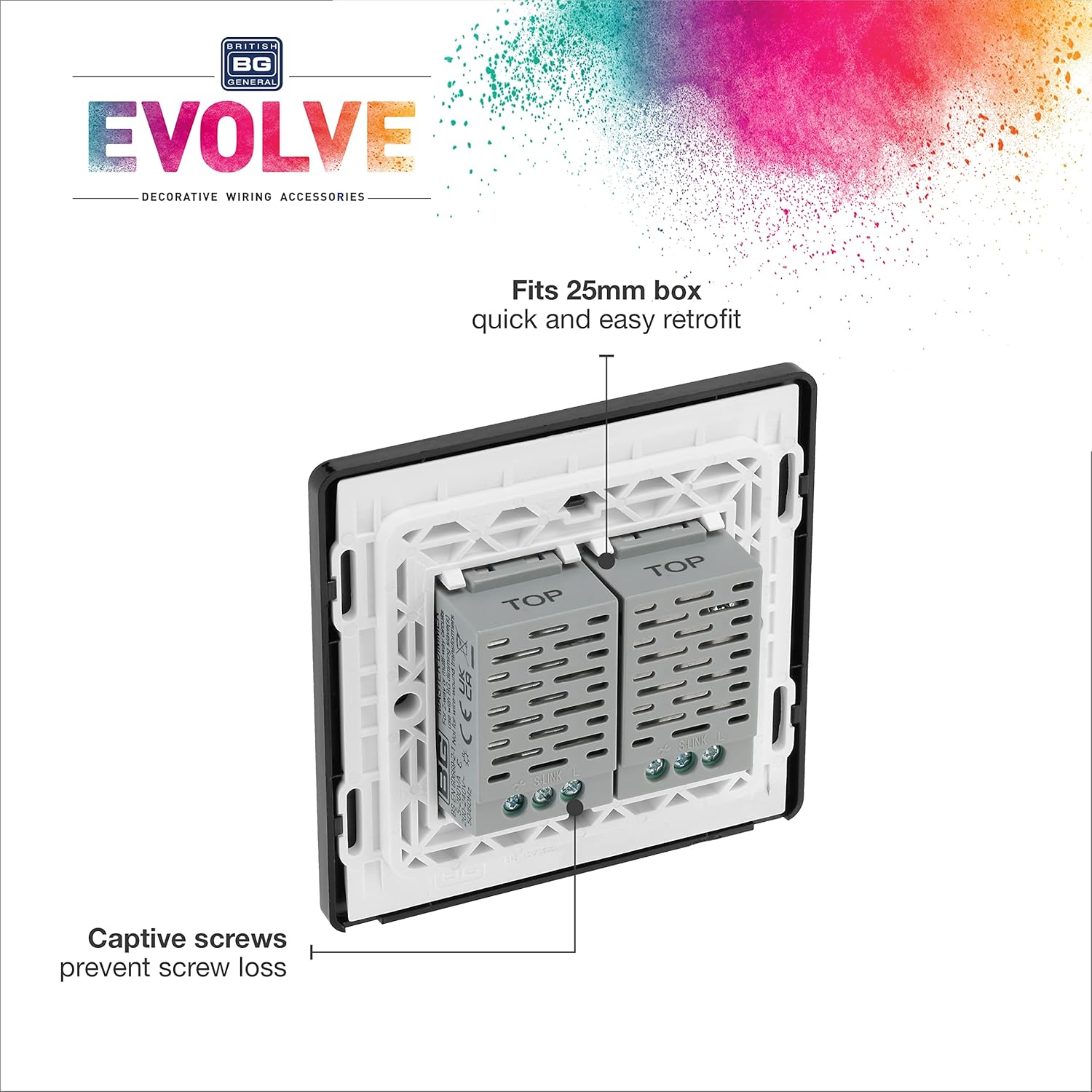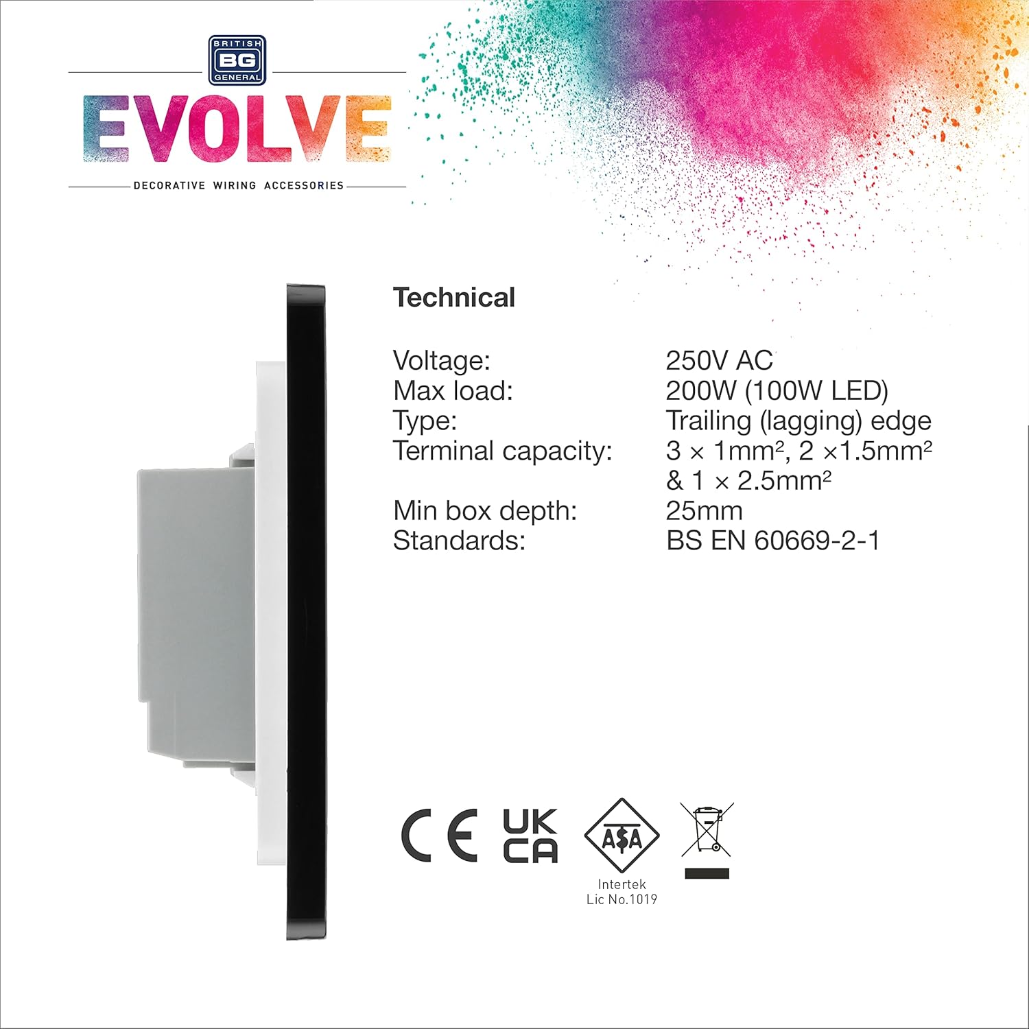 Our BG Electrical double master touch dimmer wall switch in polished copper provides smooth, reliable dimming for LED, halogen, and incandescent lights. Featuring intelligent trailing-edge technology, it allows tap-to-switch or hold-to-dim operation with silent performance and soft-start functionality, extending bulb life. The screwless front plate and captive backed-out terminal screws simplify installation and redecorating, while overload protection ensures safe operation. Rated at 200W (100W LED) with a 2-way configuration, it can function as a standalone dimmer or paired with BG secondary touch dimmers, and comes with a 25-year warranty.