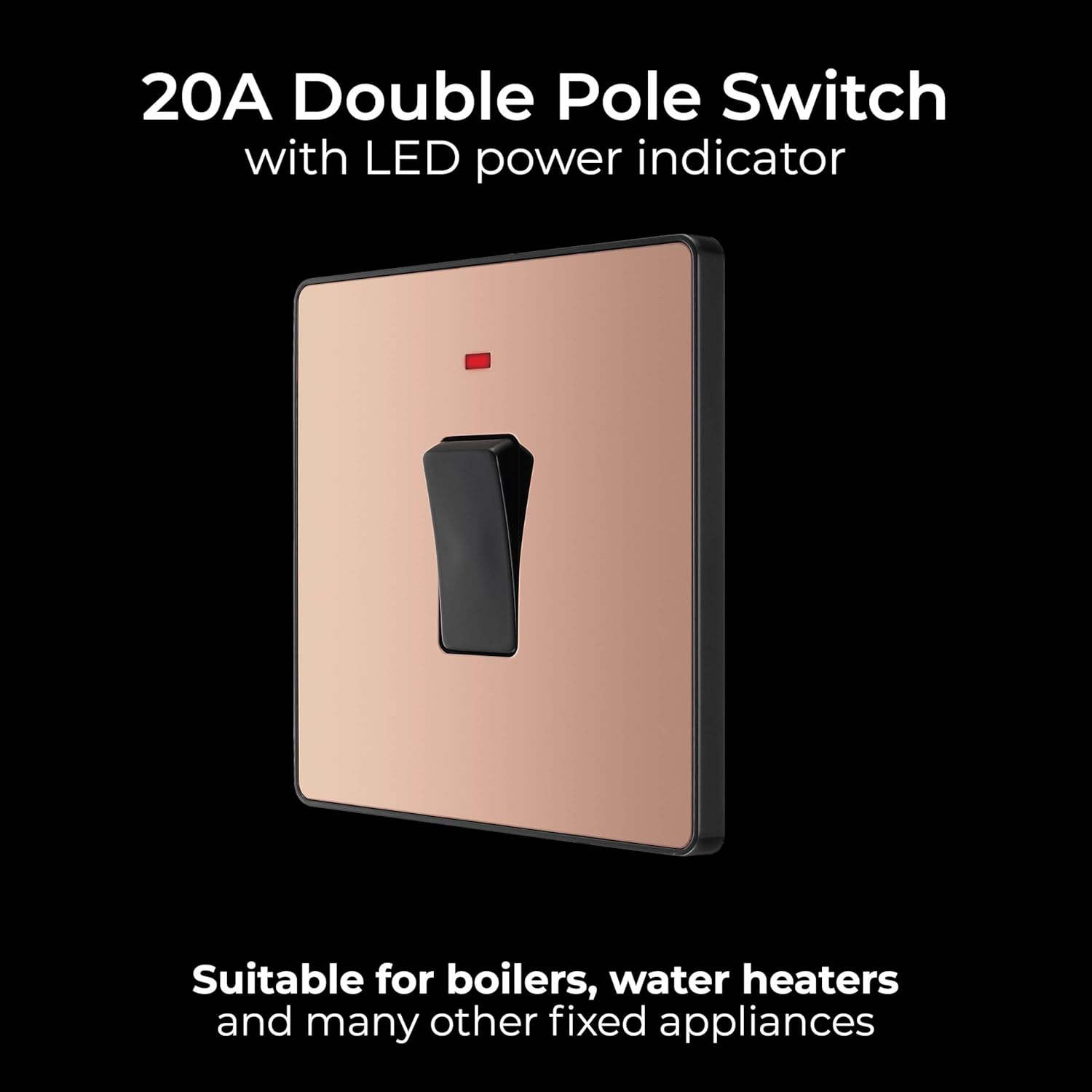 The BG Electrical Double Master Touch Dimmer in polished copper delivers smooth, silent dimming for LED, halogen, and incandescent lights. Its trailing-edge technology allows tap-to-switch or hold-to-dim operation with soft-start, extending bulb life. The screwless front plate and captive terminal screws make installation simple, while overload protection ensures safe operation. Rated at 200W (100W LED) and compatible with BG secondary dimmers, it combines modern style, reliability, and ease of use.
