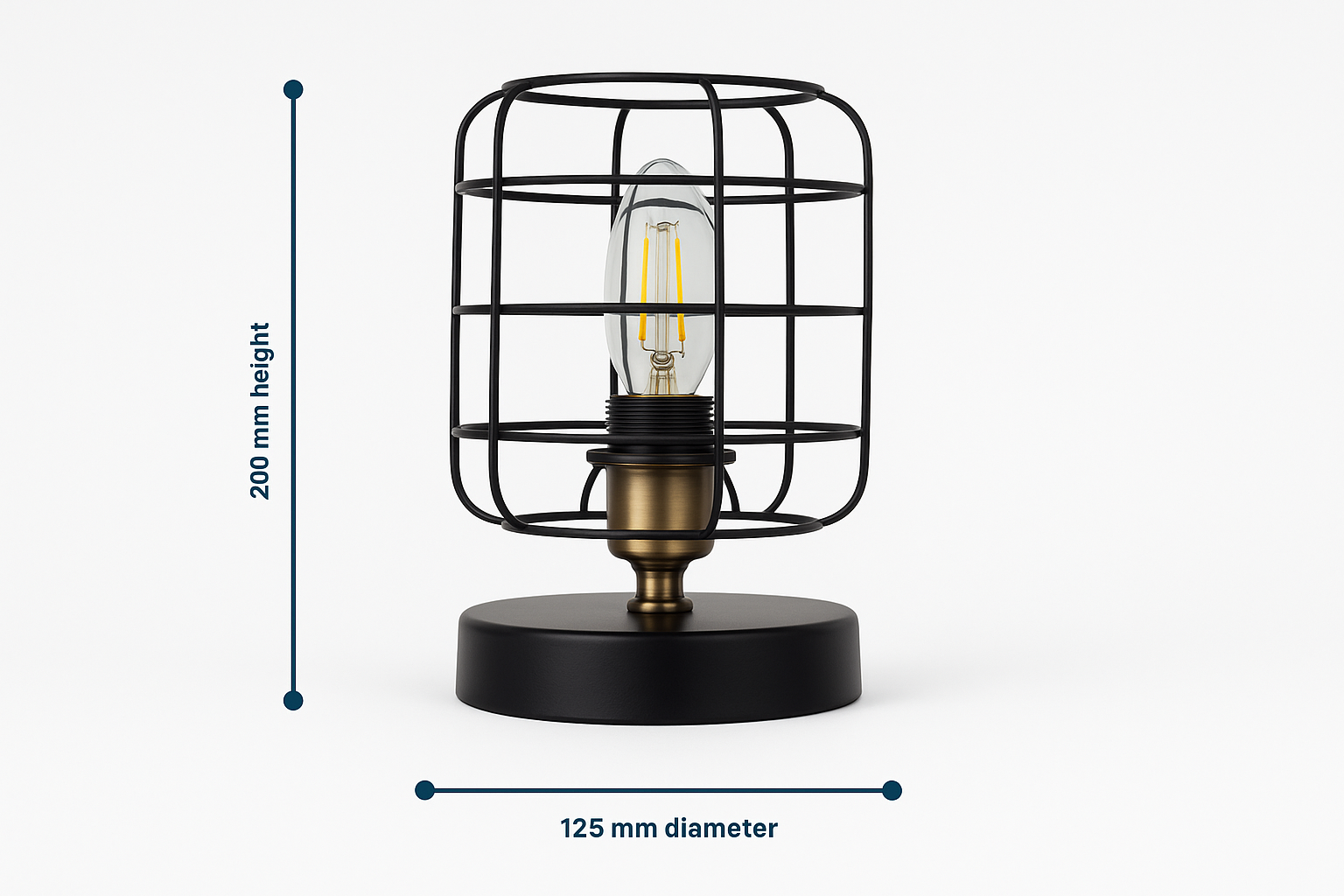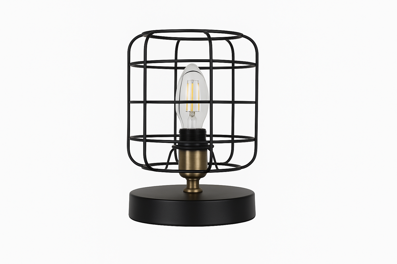 Introduce a touch of vintage industrial charm to your space with this compact table lamp. Featuring a sleek black metal cage design complemented by antique brass detailing, this lamp is perfect for bedside tables, desks, or cozy reading nooks. Its minimalist aesthetic seamlessly blends with various interior styles, from modern lofts to rustic retreats.