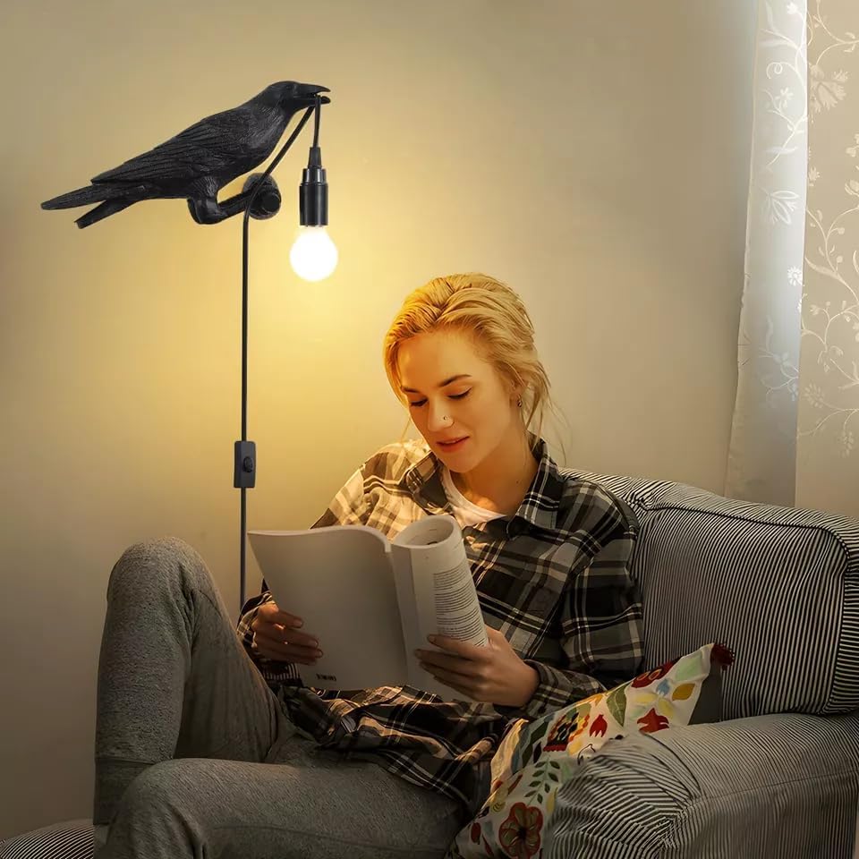 Our raven bird resin wall lamp delivers a striking blend of decorative art and functional lighting, featuring an artfully crafted crow design that holds the bulb for a bold visual statement. Made from durable resin with a plug-in E27 base, this wall mounted lamp offers stable performance, easy installation, and flexible placement as a bedside, wall, or accent light, making it suitable for bedrooms, offices, dorm rooms, and themed interior décor.