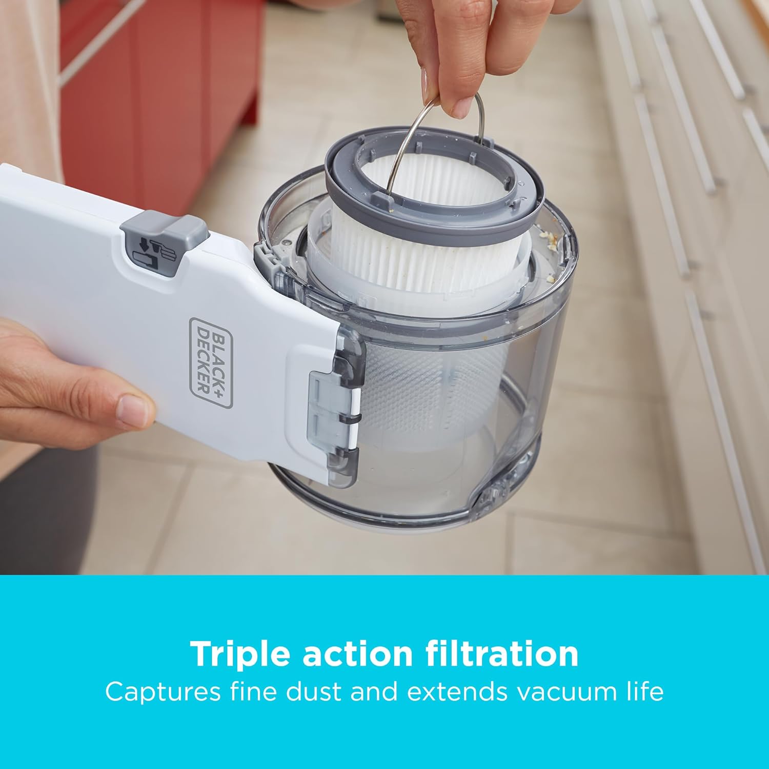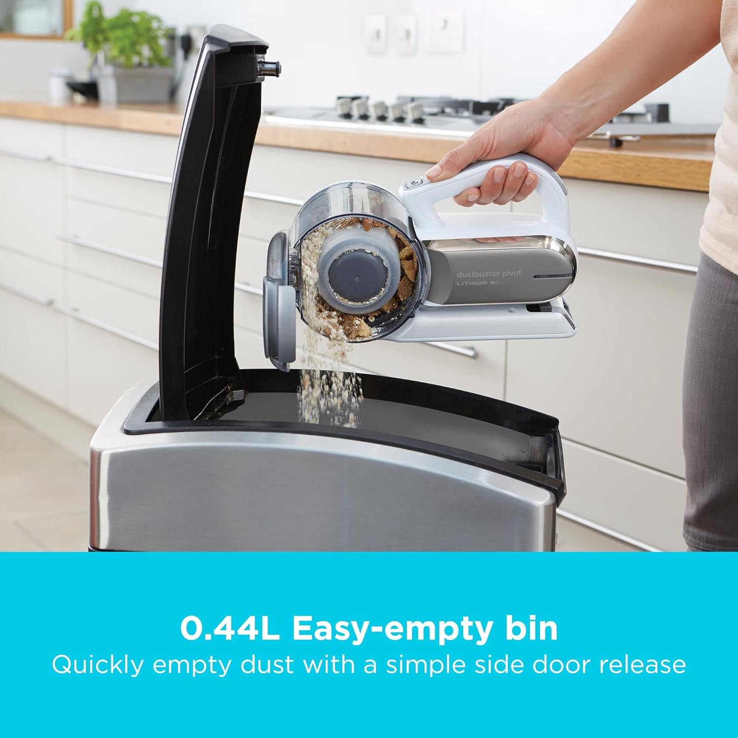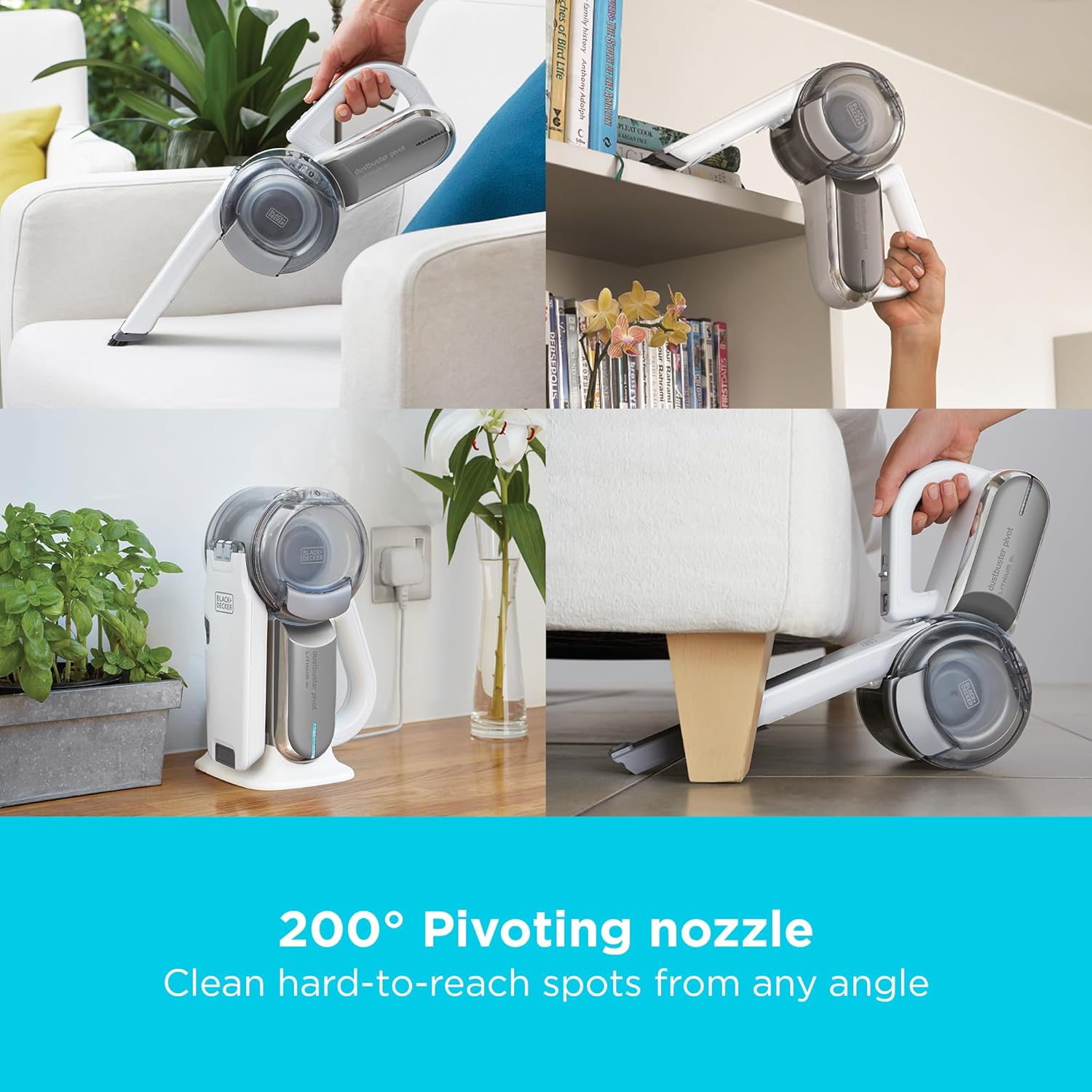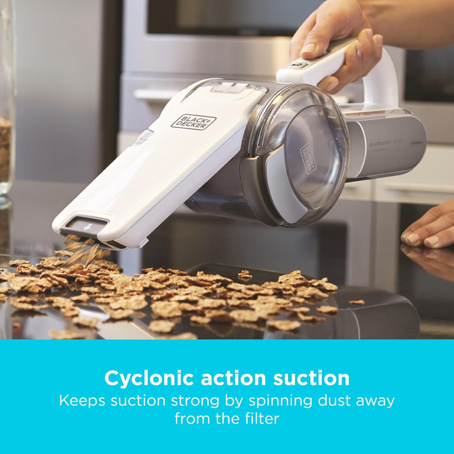 Experience exceptional cleaning freedom with the BLACK+DECKER Dustbuster Pivot Cordless 18V Handheld Vacuum Cleaner (PV1820L-GB). Designed for modern homes, this compact and lightweight vacuum combines power, versatility, and convenience. Its 200° pivoting nozzle allows you to reach awkward corners and high surfaces effortlessly, while the cyclonic action and triple filtration system ensure consistent suction power and cleaner air. Perfect for quick clean-ups around the home, car, or office, the 18V lithium-ion battery delivers up to 10 minutes of cordless runtime. The easy-empty 0.44L dustbin and integrated tools make everyday cleaning faster, cleaner, and more efficient.