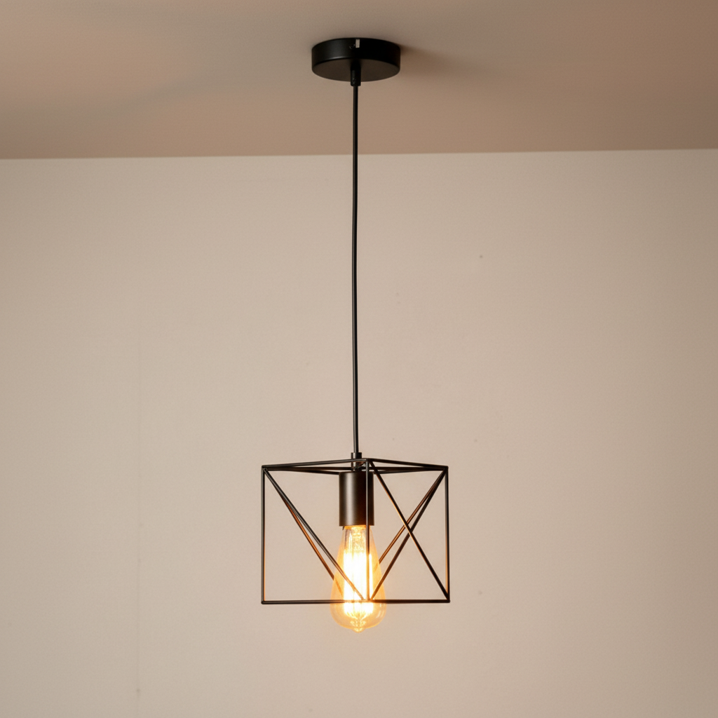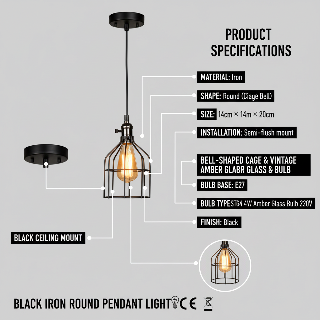1 × Black Iron Pendant Ceiling Light (Selected Design & Size)