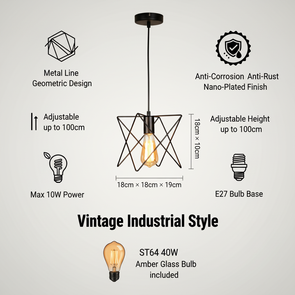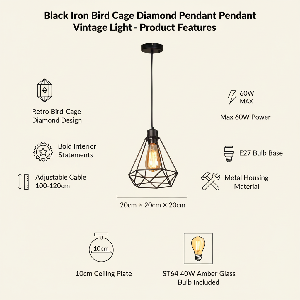 This listing allows customers to choose their preferred pendant design and size, along with two bulb variations to suit different ambience needs. Whether you prefer a clean look without a bulb or a warm vintage glow with ceiling tray + ST64 E27 40W amber glass bulb, this flexible setup ensures the perfect lighting solution for kitchens, dining rooms, bedrooms, cafés, and more.