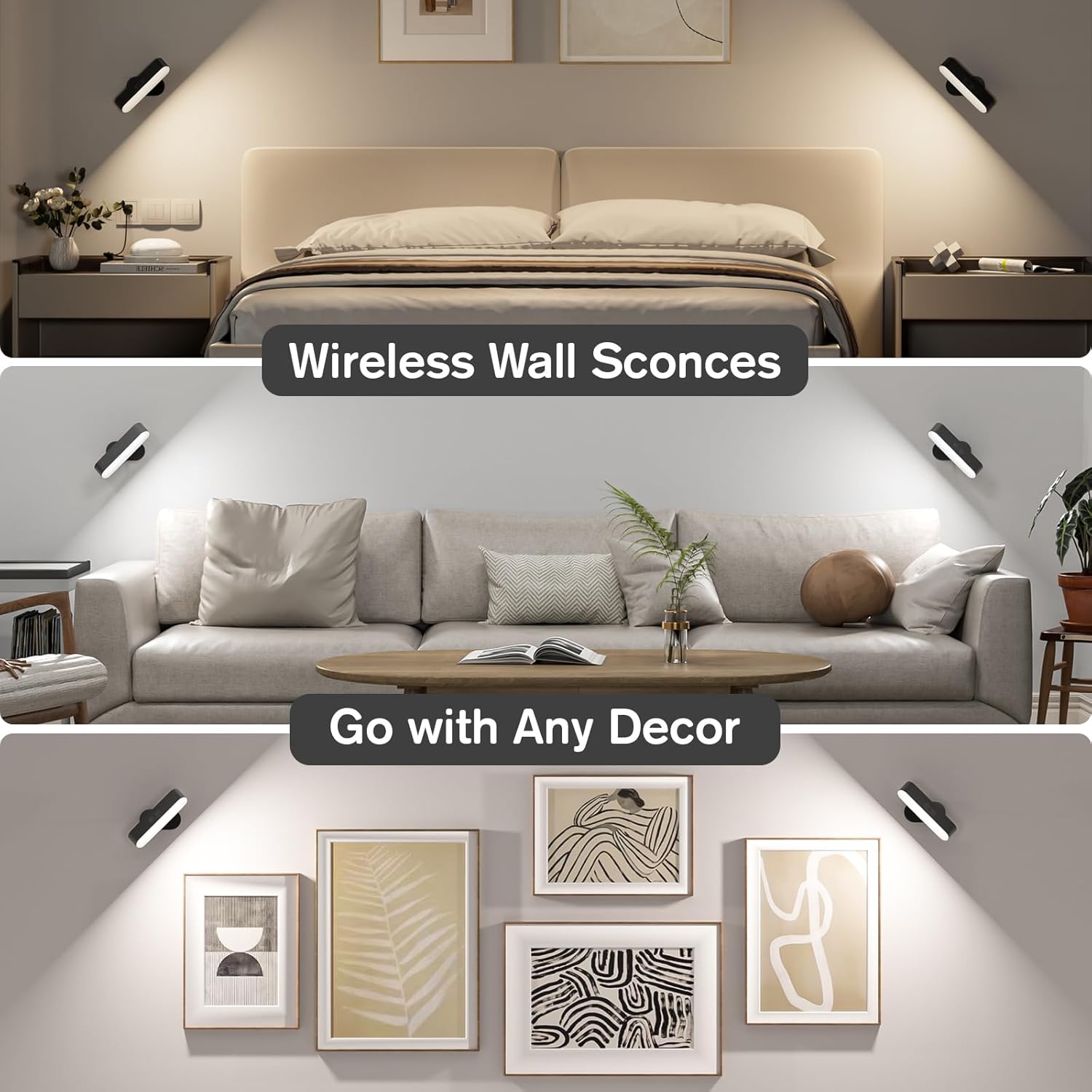 Our rechargeable magnetic wall lights provide flexible and wireless illumination for bedrooms, bedside areas, pictures, and indoor spaces without the need for hard wiring. Powered by a large 5000mAh battery, each wall sconce delivers long-lasting performance from 12 up to 150 hours depending on brightness, with fast USB-C recharging in just 3–4 hours. Featuring adjustable colour temperatures and stepless dimming, these LED wall lamps allow precise control of brightness and ambience through intuitive touch operation. The magnetic 360° rotatable design enables easy angle adjustment and quick removal for portable use, while multiple mounting options offer convenient installation on walls or flat surfaces. Designed for modern interiors, these battery-operated wall lights combine practicality, comfort, and versatile lighting performance.
