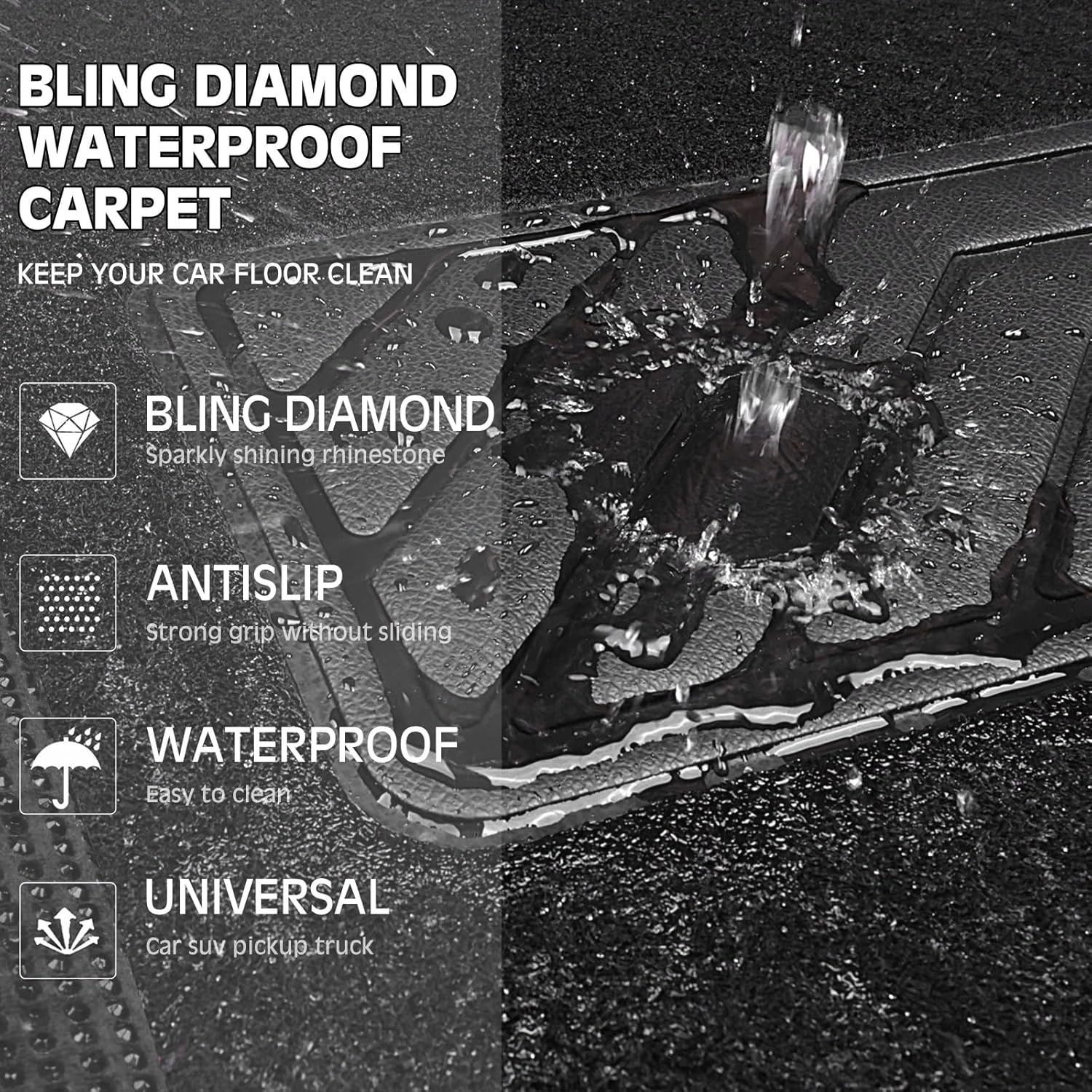 Our Bling Diamond Car Floor Mats combine elegance and practicality with a sparkling rhinestone finish that enhances any vehicle’s interior. Made from durable PVC and premium glittering rhinestones, these mats provide waterproof protection against stains, spills, and dirt while keeping your car’s flooring spotless. The anti-slip backing ensures stability, and the cushioned PVC heel pad provides long-lasting comfort for your feet. Designed to fit most cars, sedans, SUVs, and vans, these mats are an ideal blend of style, durability, and function for both women and men who love a touch of luxury in their ride.