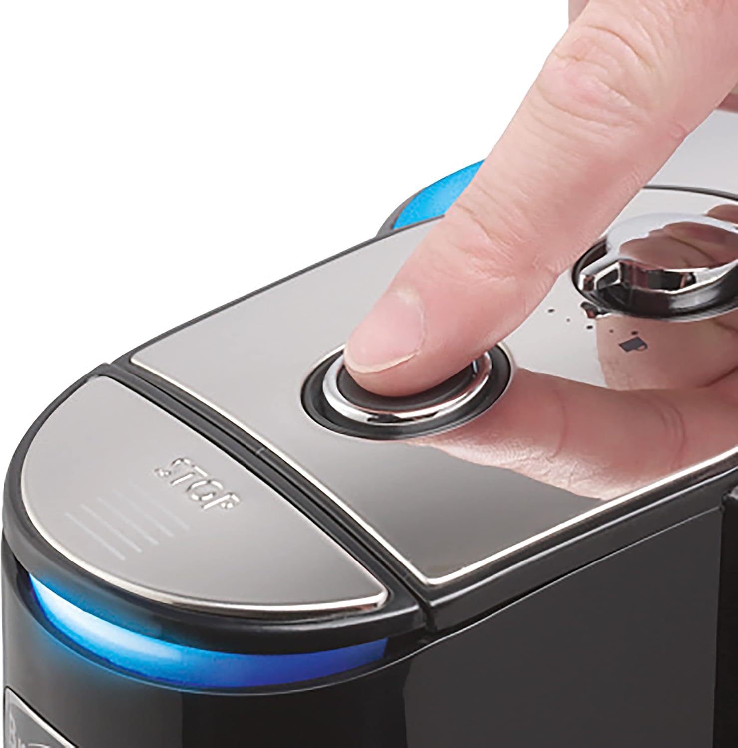 Illuminated Water Window: Large, easy-view water window with blue lighting indicates boiling mode.