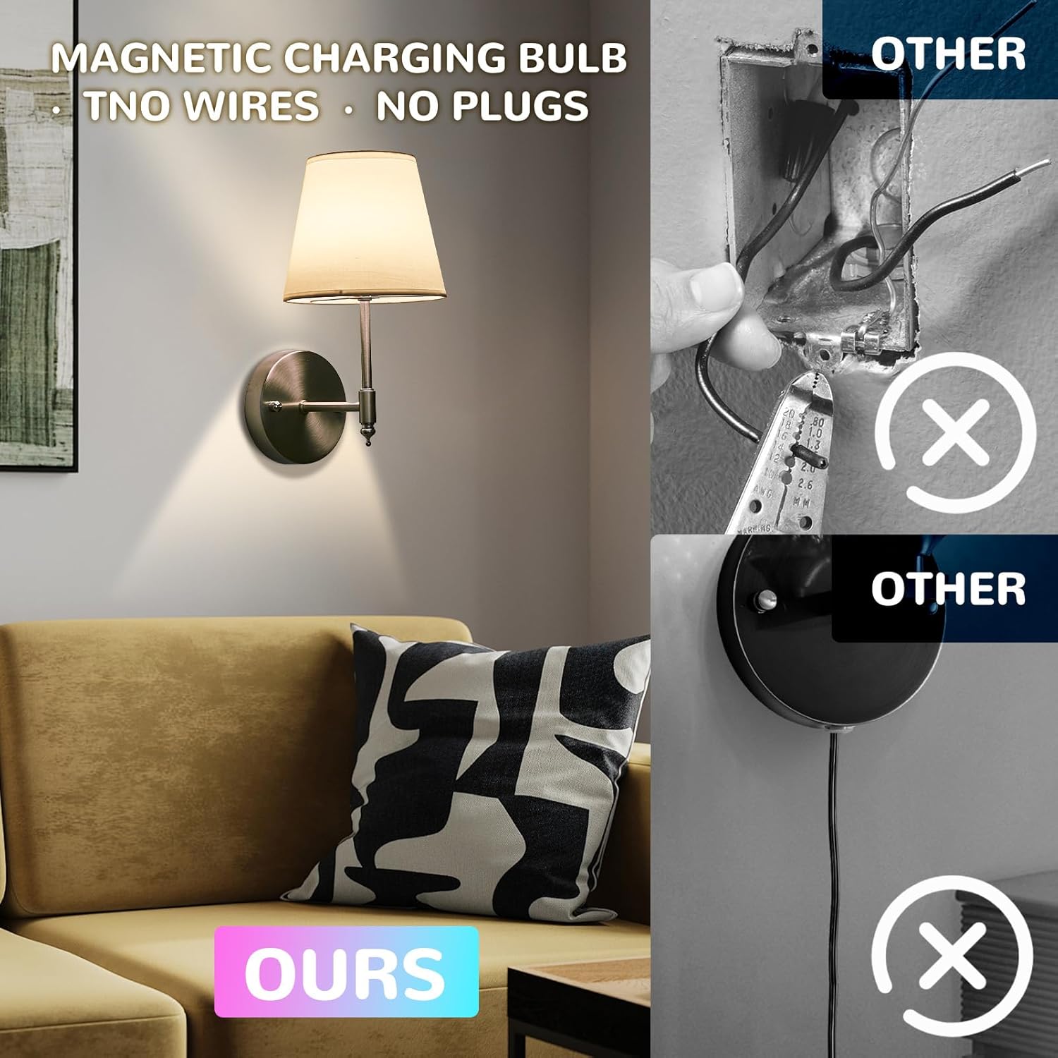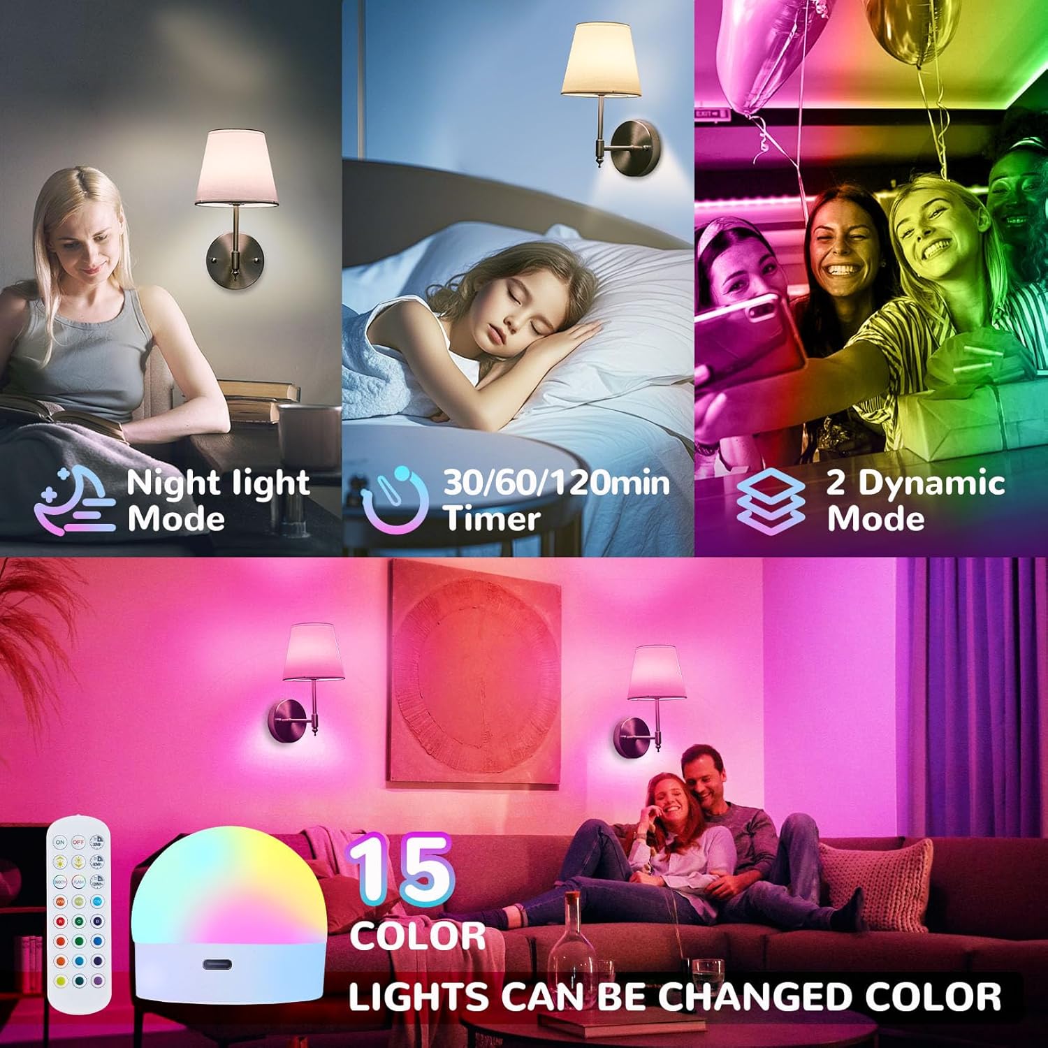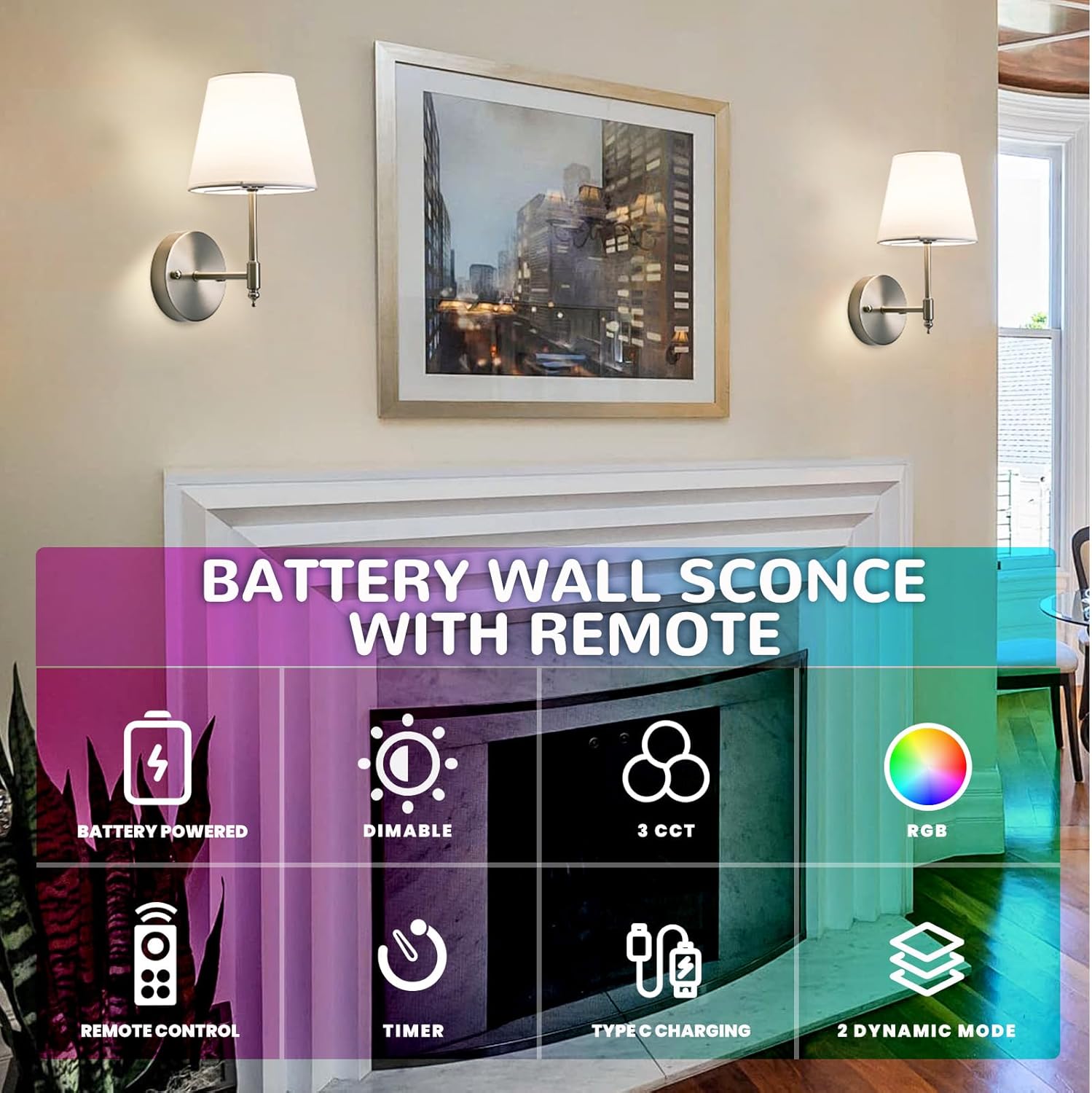 Our brushed nickel battery operated wall sconce set of 2 combines **modern design**, **wireless convenience**, and **versatile lighting options** to enhance any indoor space. Featuring magnetic rechargeable bulbs with USB charging, these cordless wall lights provide up to 25 hours of continuous illumination after just 3 hours of charging. With 15 RGB color options, adjustable brightness from 10% to 100%, and a timer function, they are perfect for creating any mood from cozy reading light to vibrant party lighting. The easy 5-minute assembly and renter-friendly installation make them ideal for homes without existing wiring, while the brushed nickel finish resists scratches, fingerprints, and corrosion, offering both durability and elegance for bedrooms, living rooms, hallways, or dining areas.