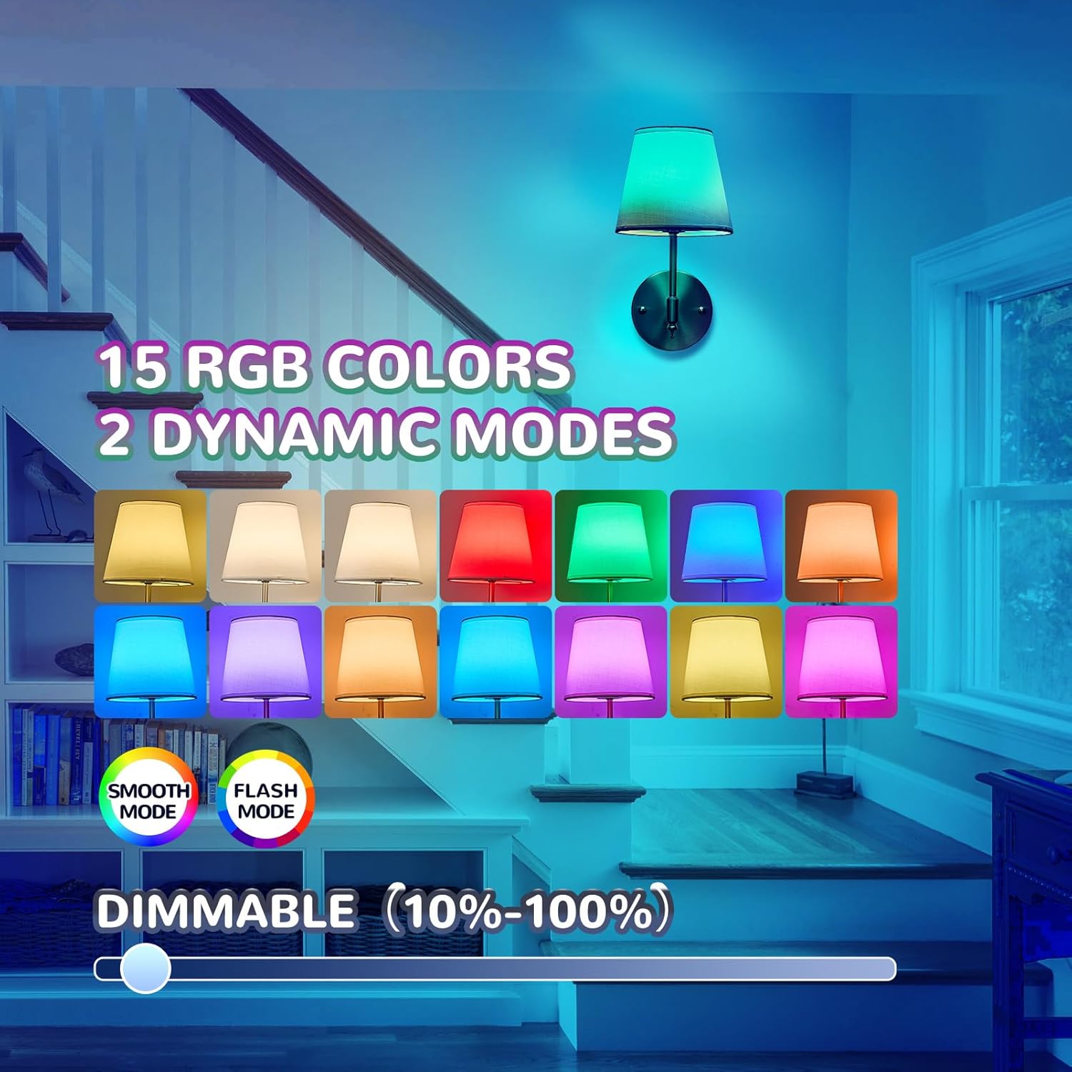- 15 RGB color options with adjustable brightness (10%-100%)