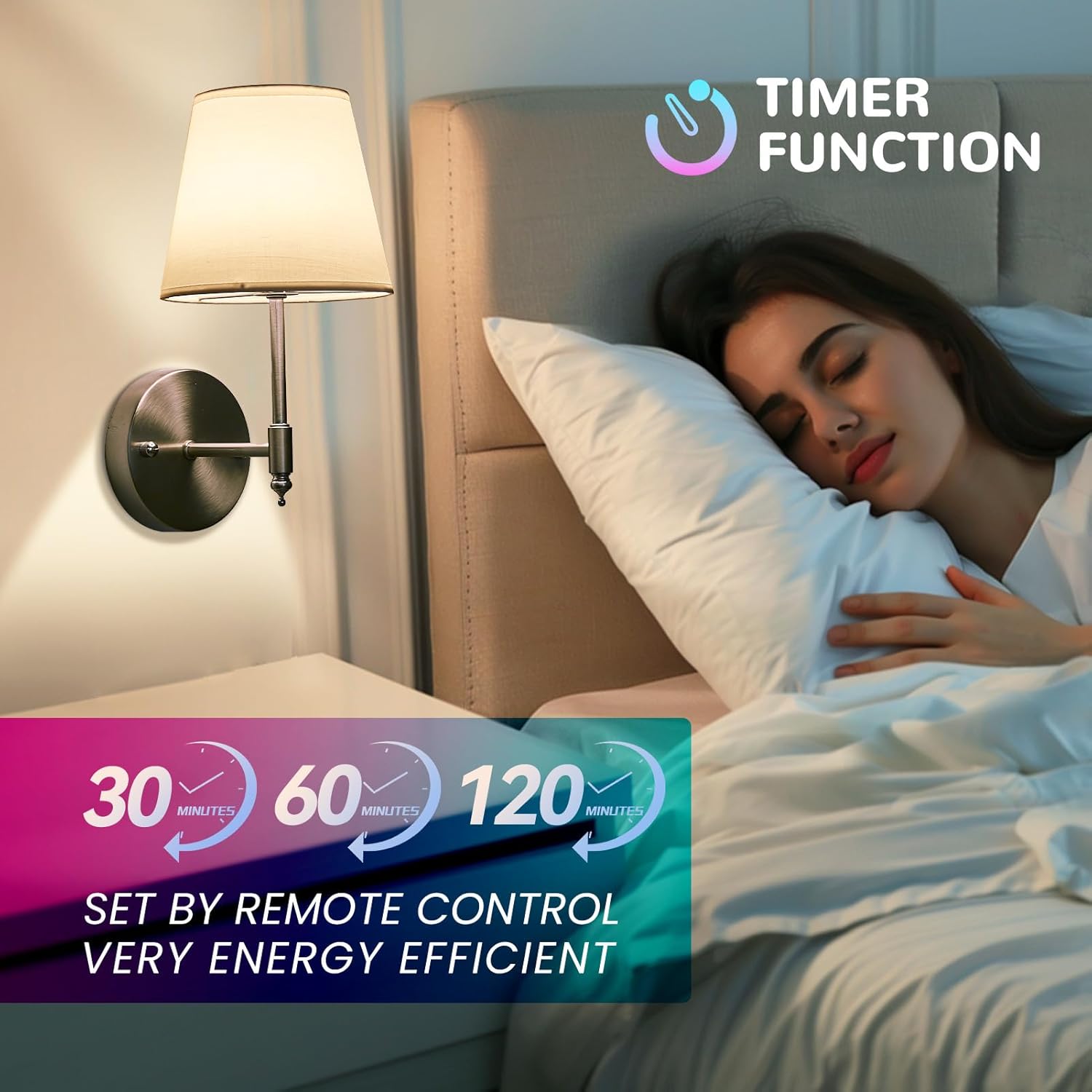 - Timer function: 30, 60, or 120 minutes