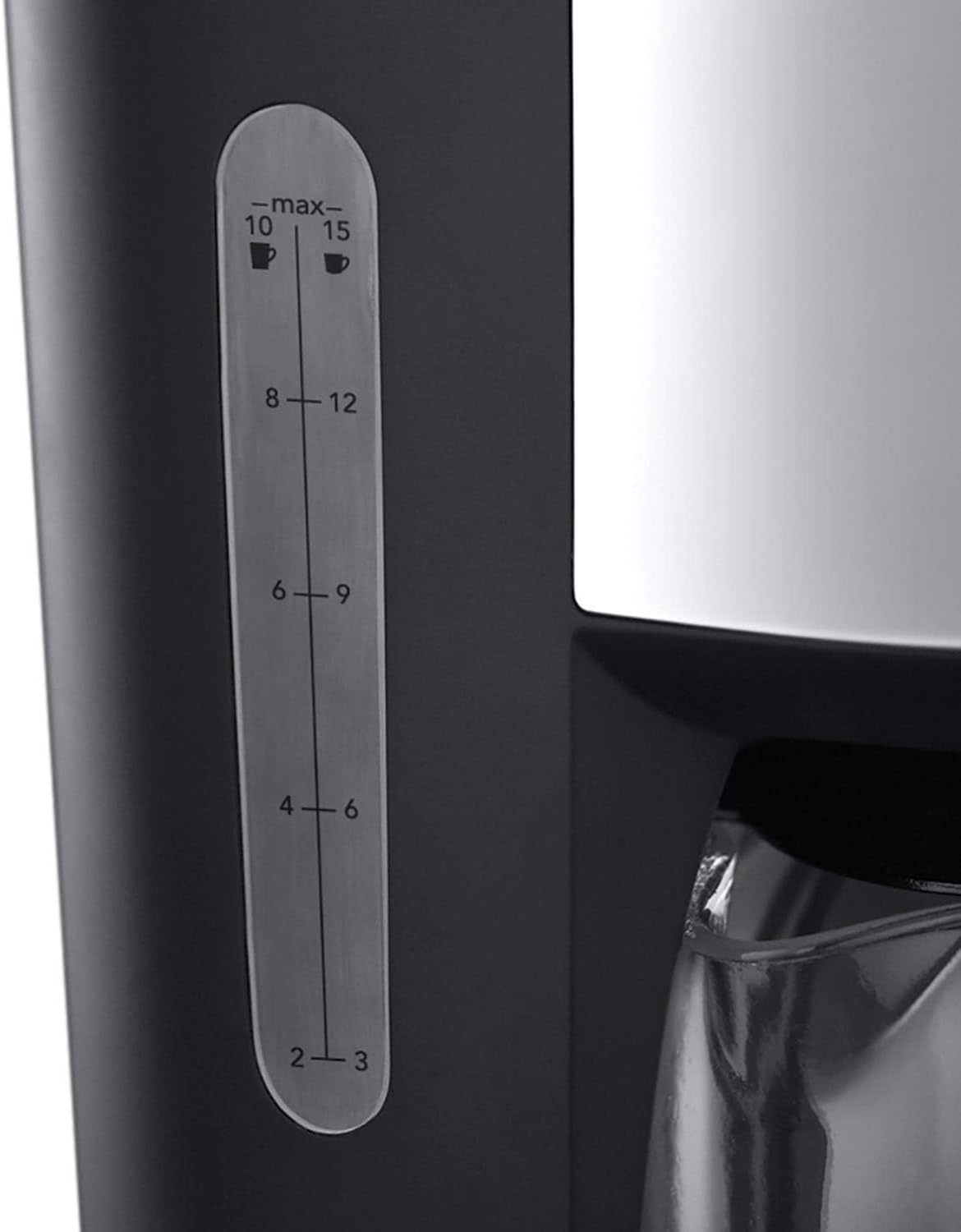 Large 1.25 Litre glass carafe capacity, making up to ten cups of coffee at once.