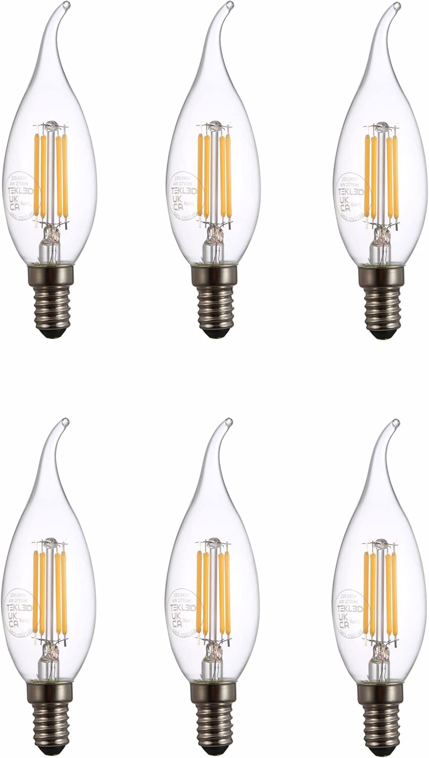 - 6 x C35 flame tip E14 LED filament light bulbs