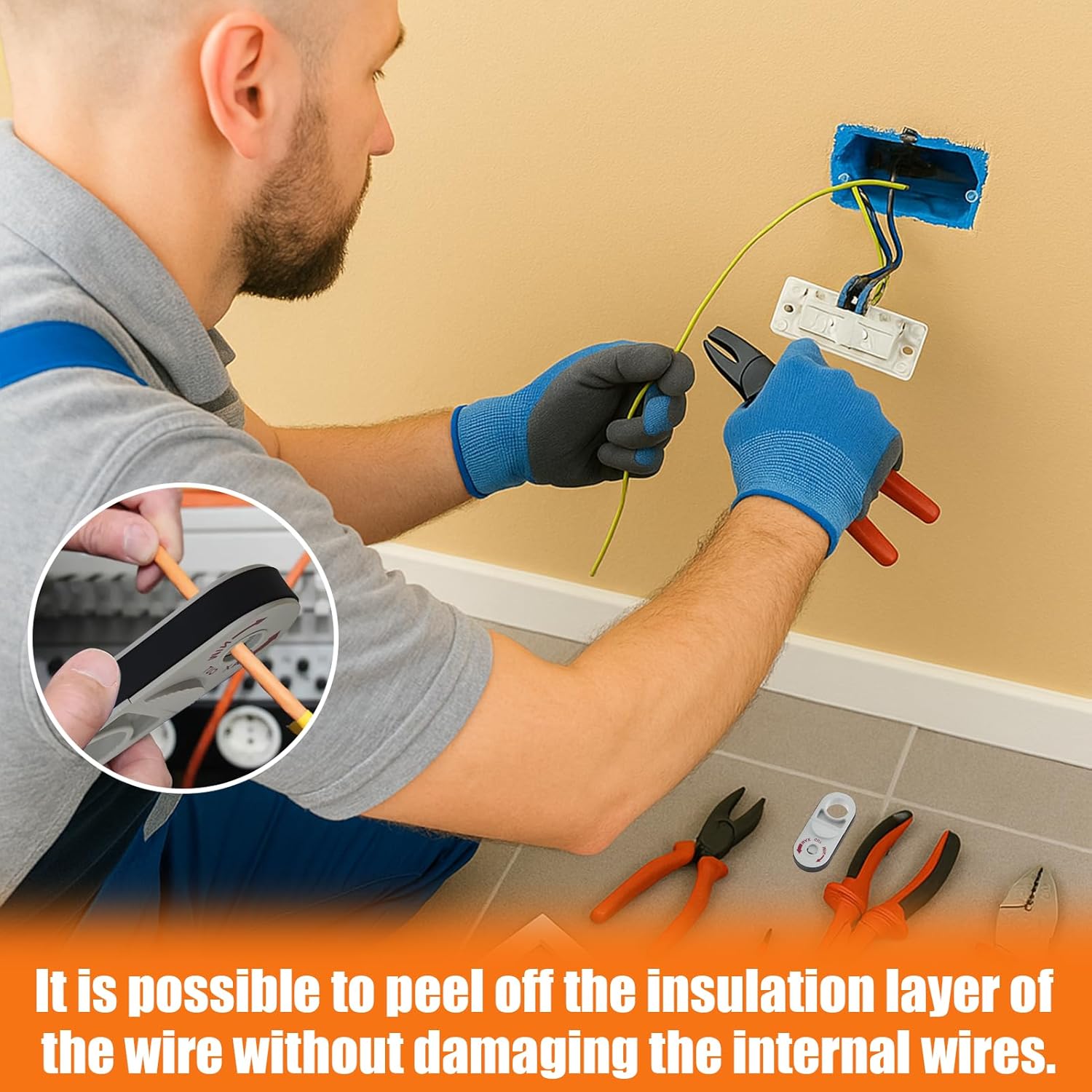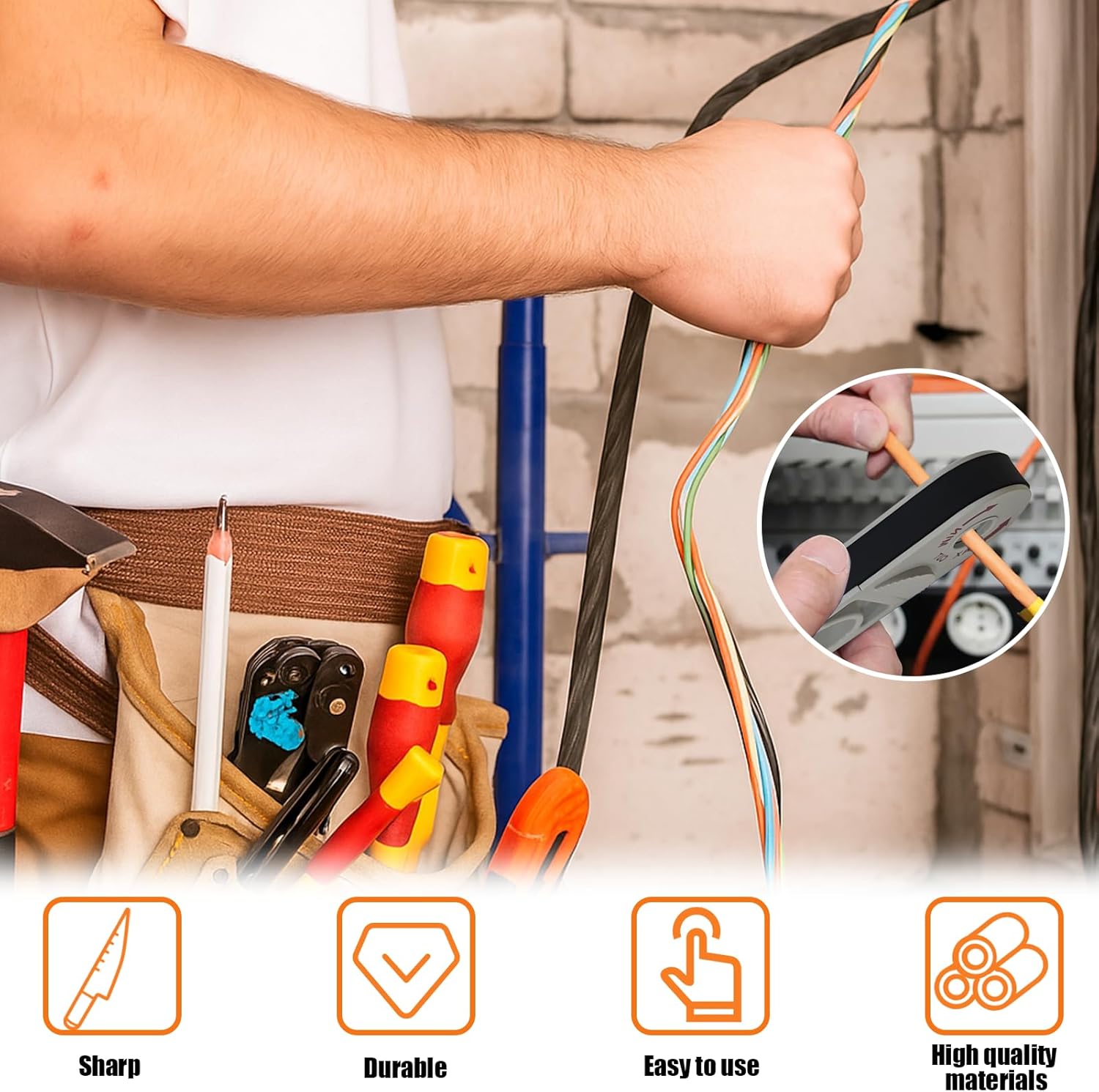 Our cable stripper tool features a rotating one-circle stripping mechanism, automatic blade depth adjustment, and compact ergonomic design for stripping copper and network cables with diameters from 0.3 to 1.28 cm. Designed for professional electrical installations and maintenance work, this wire stripper allows efficient removal of outer insulation without damaging inner conductors, braid, or foil, making it suitable for UTP, STP, SFTP, CAT5e, CAT6, CAT6a, CAT7, and CAT8 cables while improving speed, safety, and precision during cable preparation and termination.