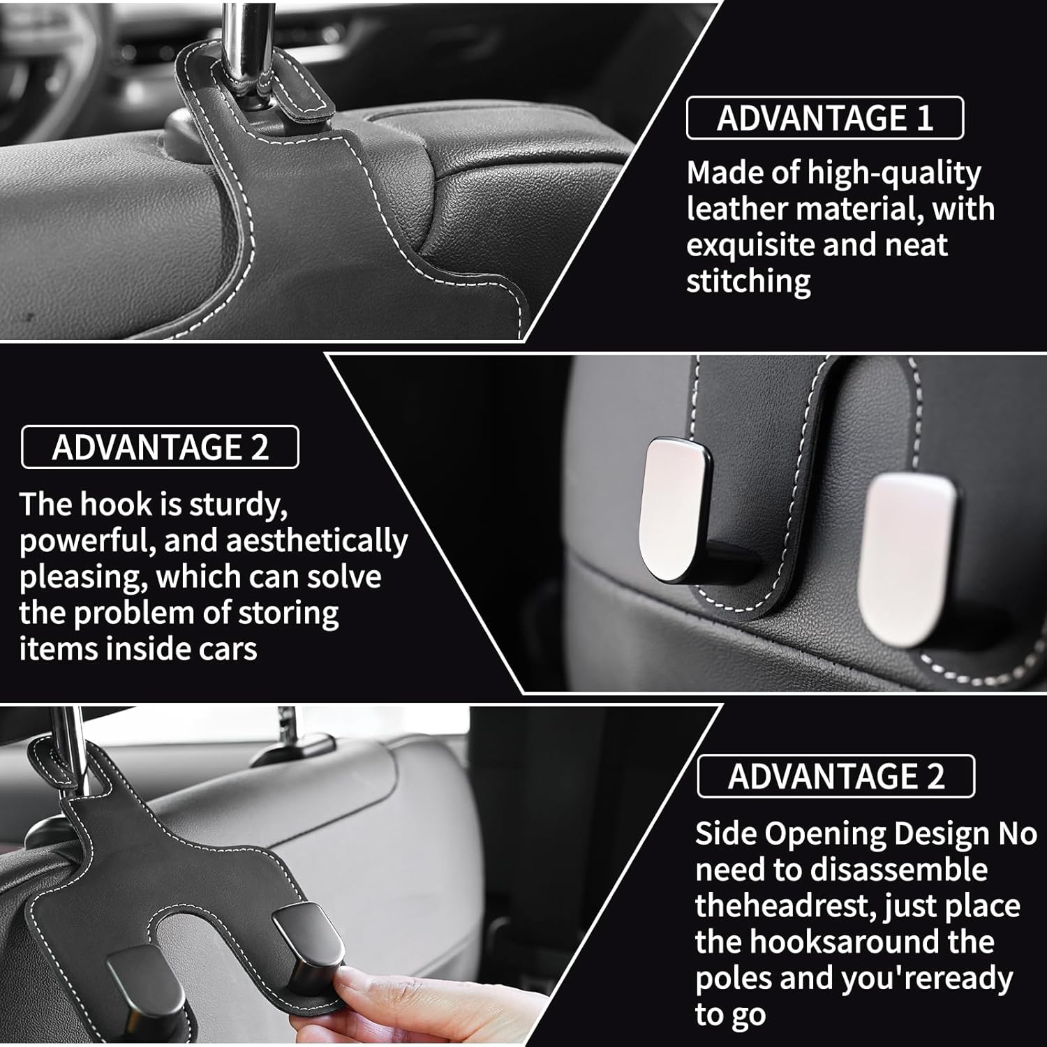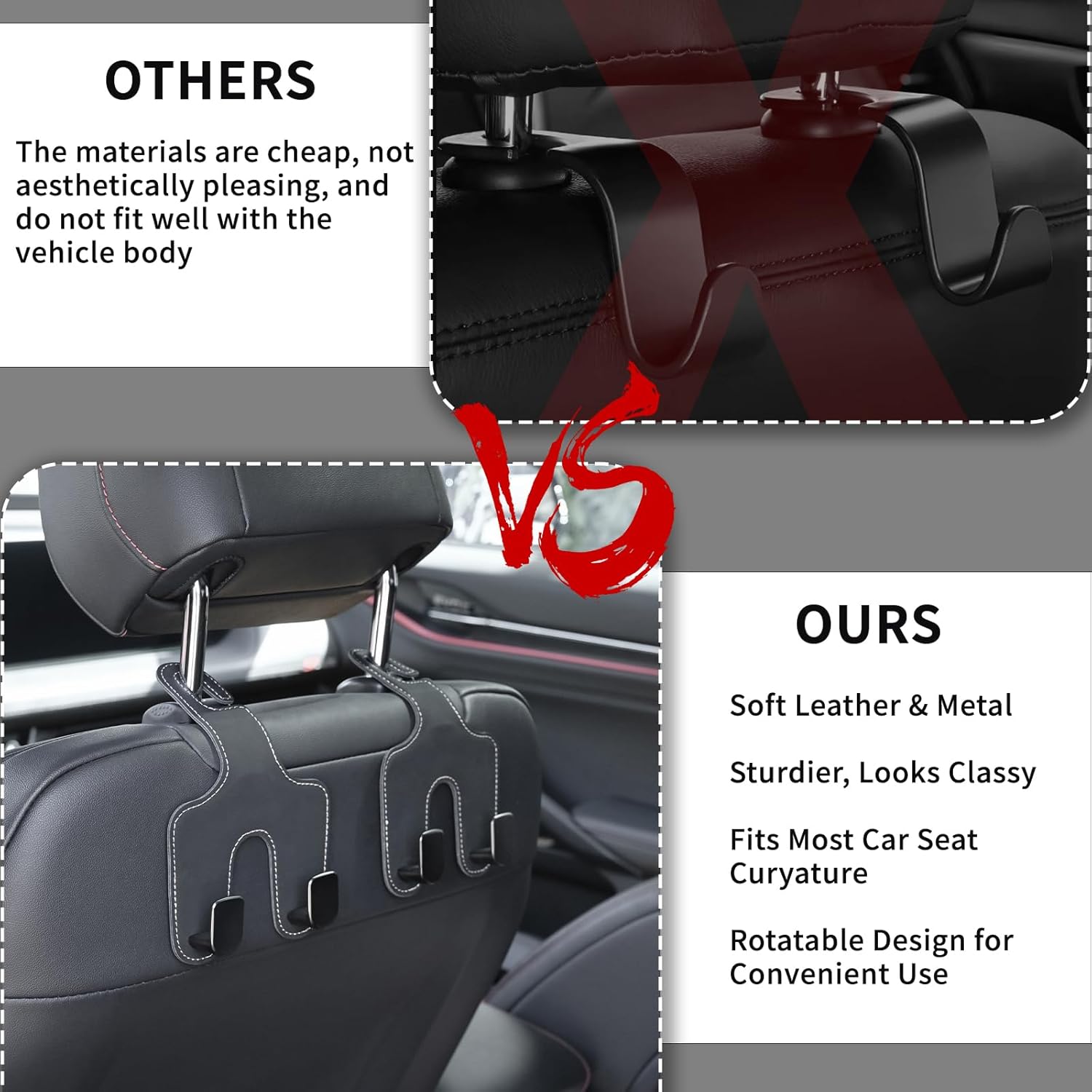 Our Car Bag Hooks, crafted from high hardness alloy metal with a durable leather cover and thickened metal hooks, provide a secure and stylish solution to organize your car interior. Designed for easy installation, these foldable hooks attach directly to your headrest without the need for tools and can be bent to any angle. They transform your car’s headrest into a practical storage space, allowing you to hang groceries, handbags, purses, clothes, umbrellas, water bottles, toys, and more. With 360° rotation capability, the hooks offer flexible positioning and can be hidden when not in use. Universally compatible, these hooks fit most cars, SUVs, and trucks, ensuring a clean and organized driving environment.