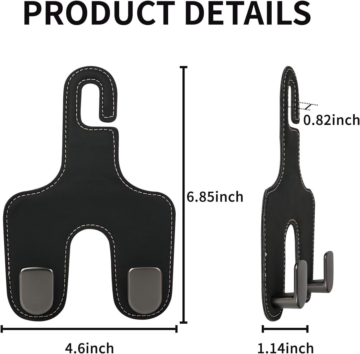 Our Car Bag Hooks provide a durable, high-quality solution for organizing your car’s interior. Made from high hardness alloy metal and covered with durable leather, these hooks feature thickened metal arms that securely hold your belongings without damaging your seats. They are easy to install, foldable, and adjustable to any angle, requiring no tools or removal of the headrest. These versatile hooks convert your car headrest into extra storage space, perfect for hanging handbags, groceries, clothes, umbrellas, water bottles, kid's toys, and more. Designed for universal compatibility, they fit most cars, SUVs, and trucks, and can rotate 360° horizontally, allowing convenient placement and easy hiding when not in use.