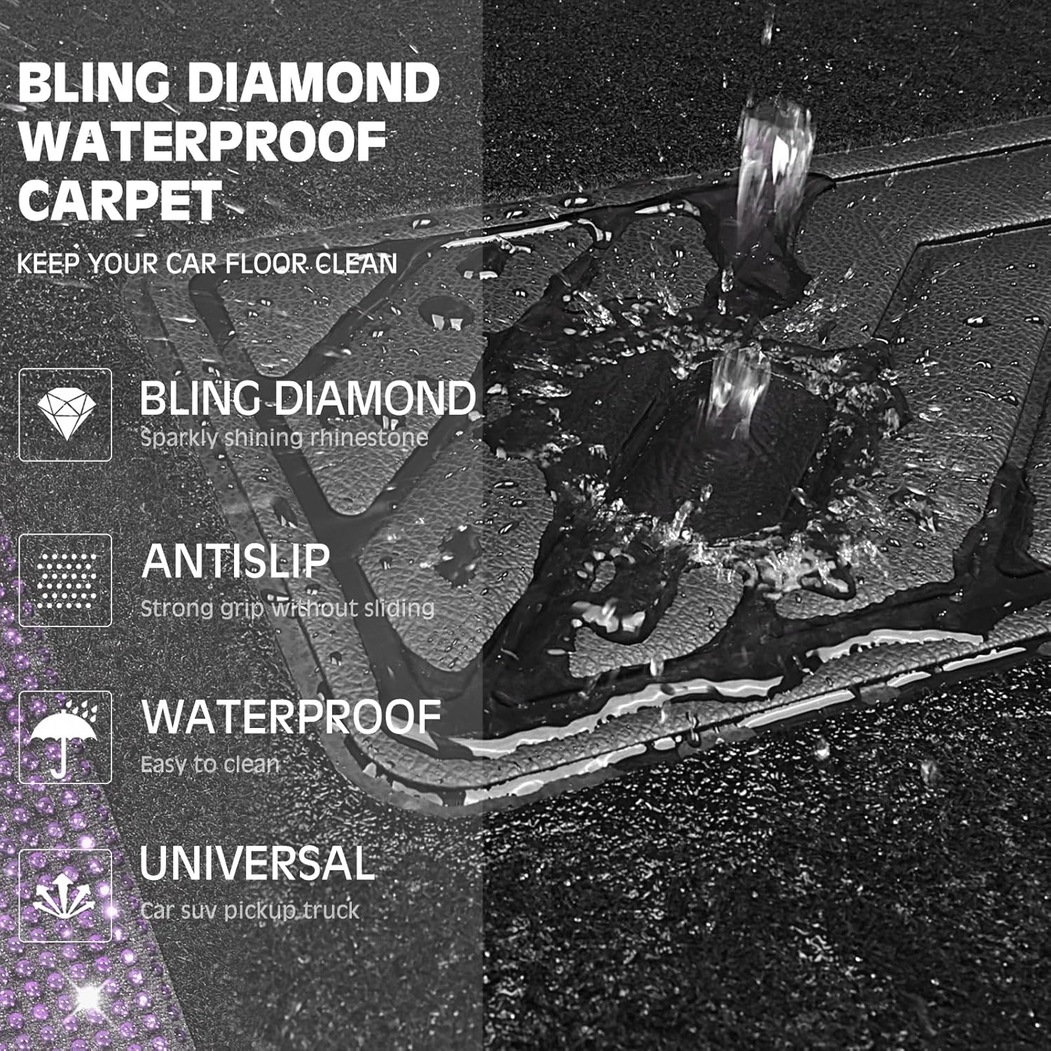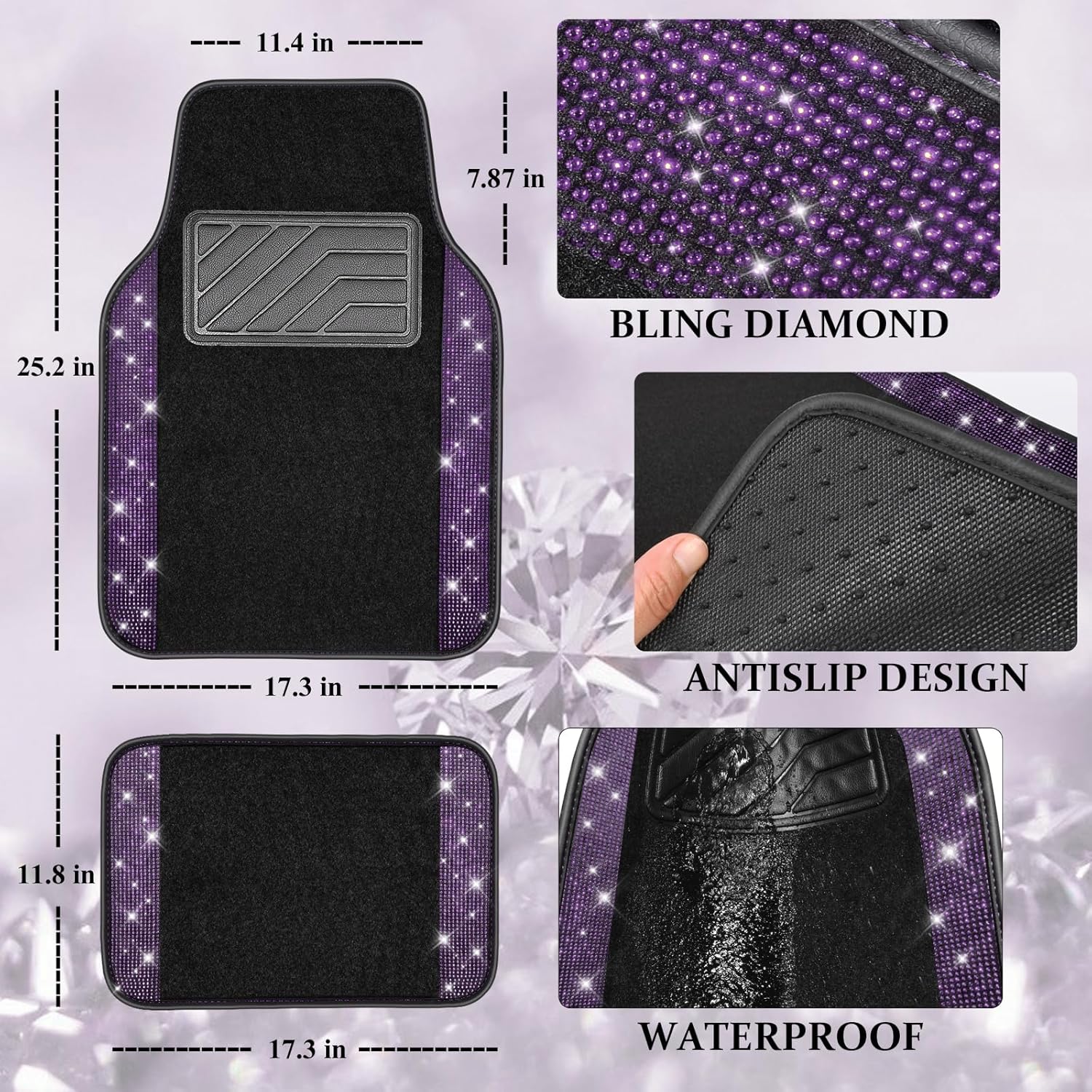 Our CAR PASS Bling Rhinestone Diamond Car Floor Mats bring luxurious sparkle and premium protection to your vehicle interior. Designed with shimmering violet rhinestones, these mats not only enhance your car’s style but also guard against dirt, spills, and everyday wear. Made from high-quality PVC and glitter-infused material, they feature an anti-slip backing for secure placement and a durable heel pad for extra comfort. Easy to clean, waterproof, and universally compatible with most vehicles including SUVs, sedans, and vans, these mats deliver both elegance and functionality.