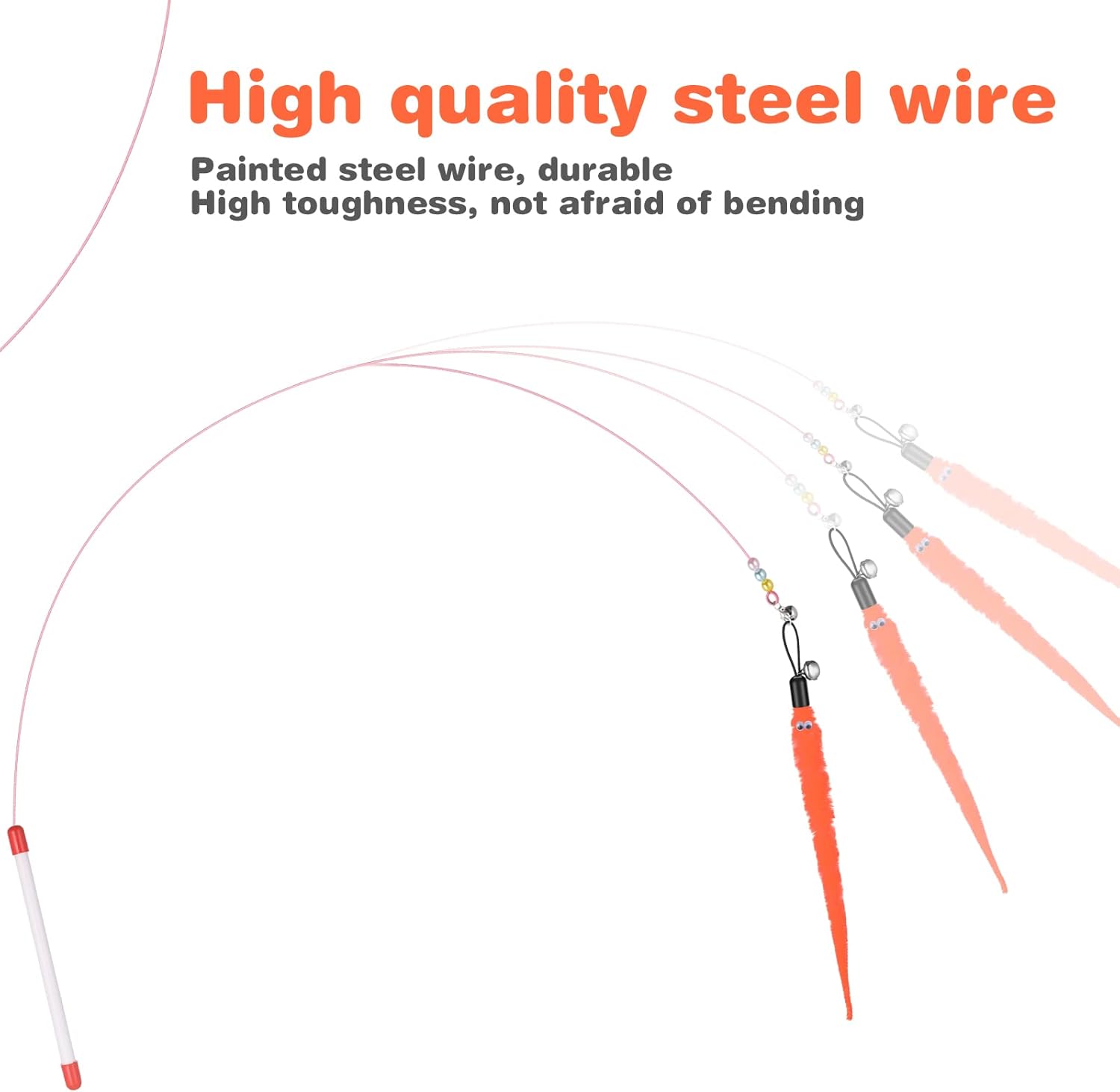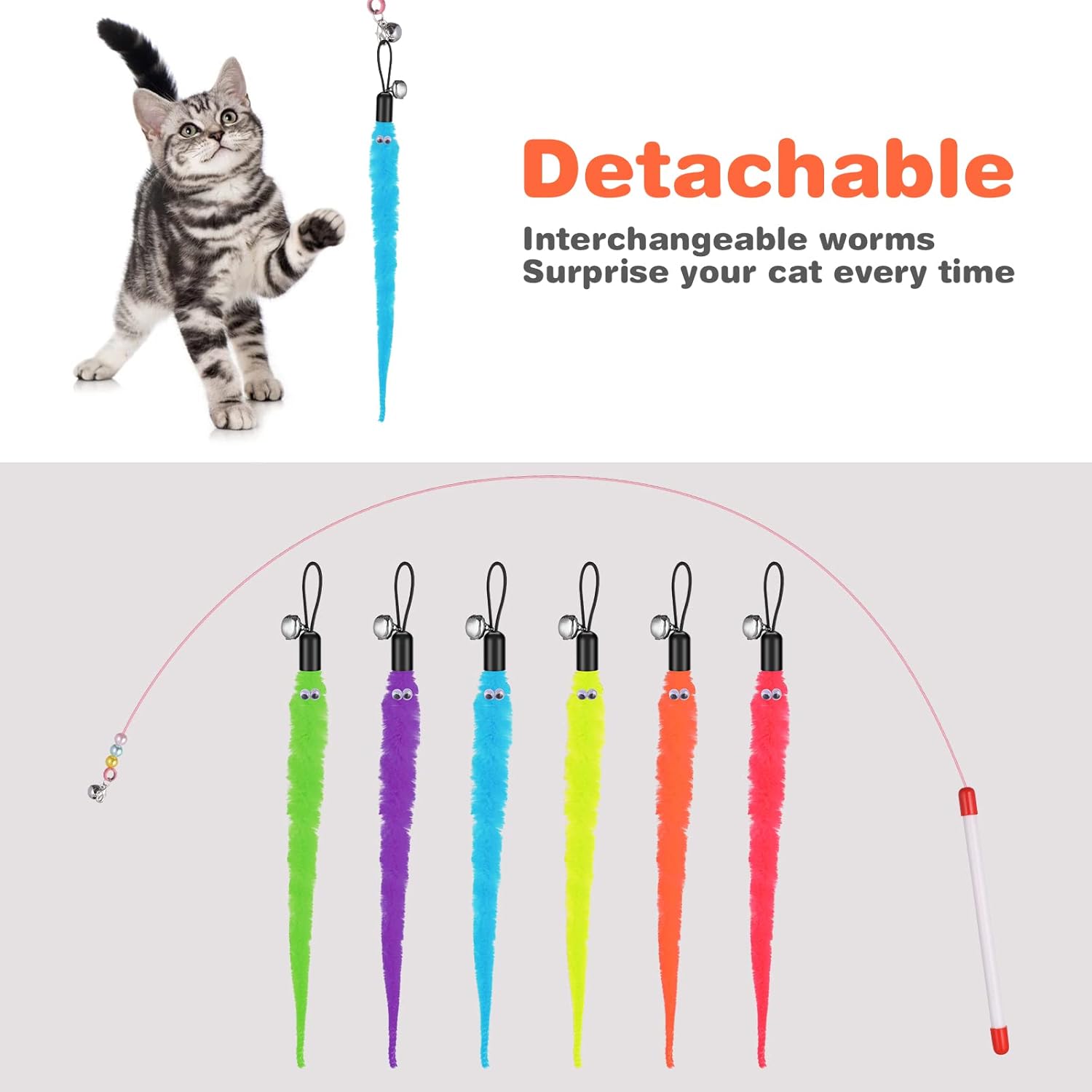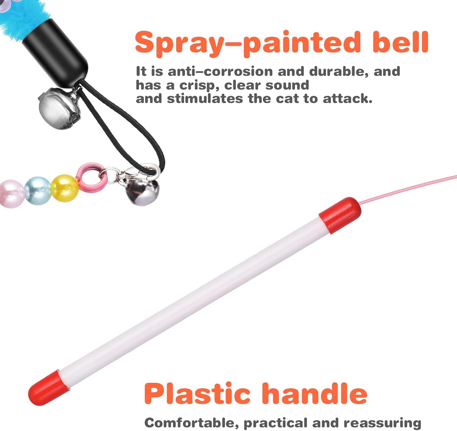 Our cat wand toy set offers an engaging interactive play experience for adult cats, combining rustling bells, colourful furry worm attachments, and a flexible retractable wand to stimulate natural hunting instincts, promote daily exercise, and strengthen the bond between pet and owner. Designed with safe, durable materials that resist shedding and fading, this lightweight indoor cat teaser keeps cats entertained while providing excellent value with multiple refills and an additional replacement string.