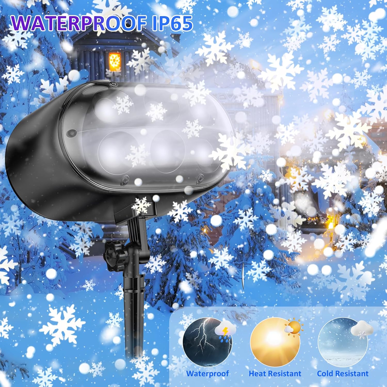 Beautiful snowflake lights! The moving snowfall effect looks magical, and the remote with timer makes it super easy to use. Great quality and fully waterproof!