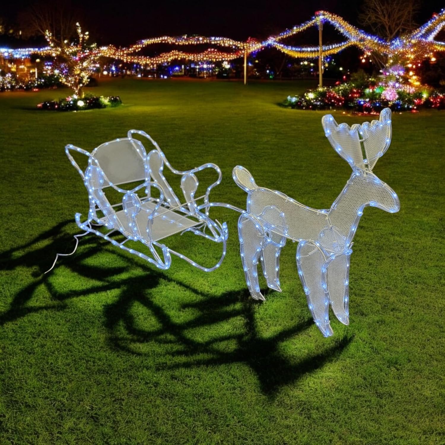 This Christmas decoration exceeded my expectations! The reindeer and sleigh look elegant and modern, and the LEDs shine brightly without using much battery power. I love that it’s suitable for both indoor and outdoor use, so I placed it on the porch as well as near the fireplace inside. The quality of the materials is impressive, and the spacing between the pieces makes it easy to arrange in any festive display. It’s energy-efficient, durable, and instantly adds holiday charm.