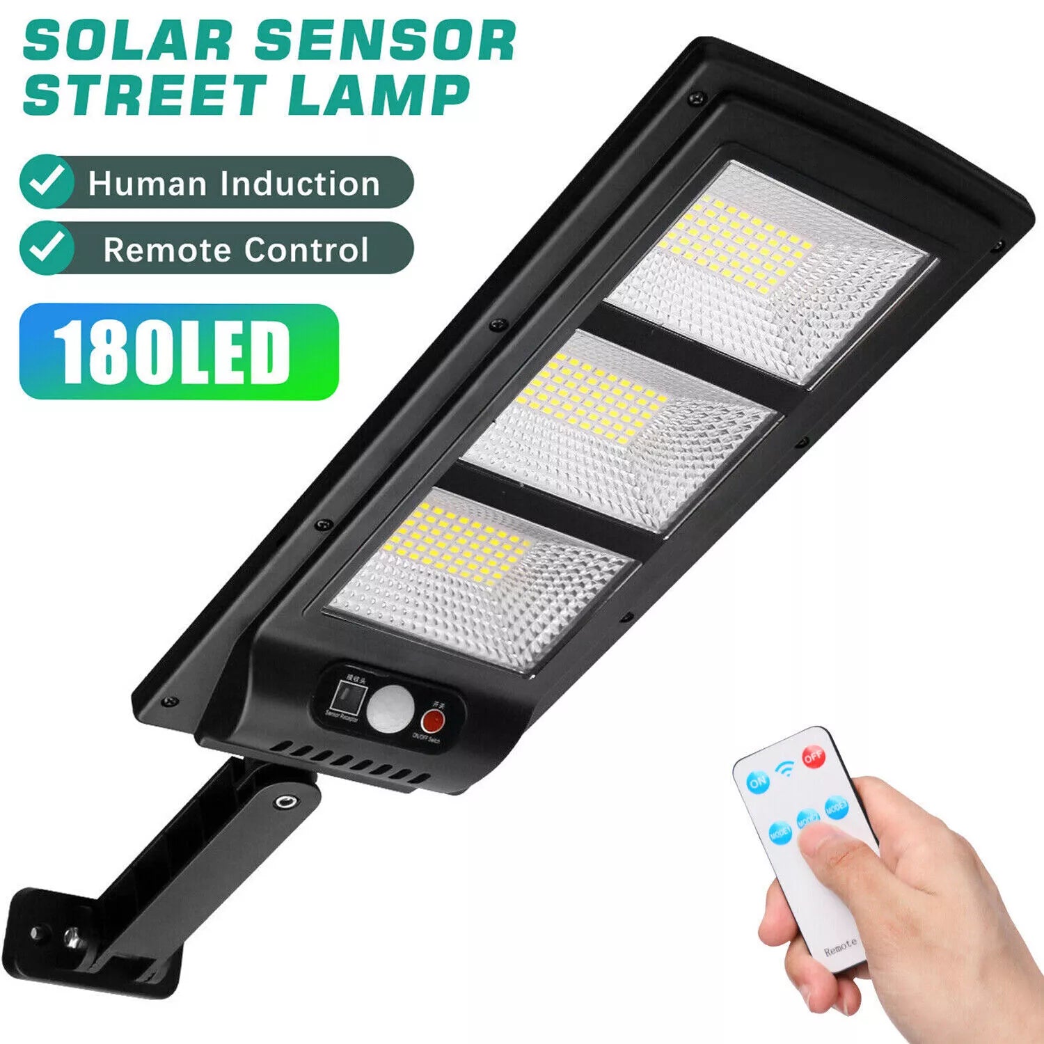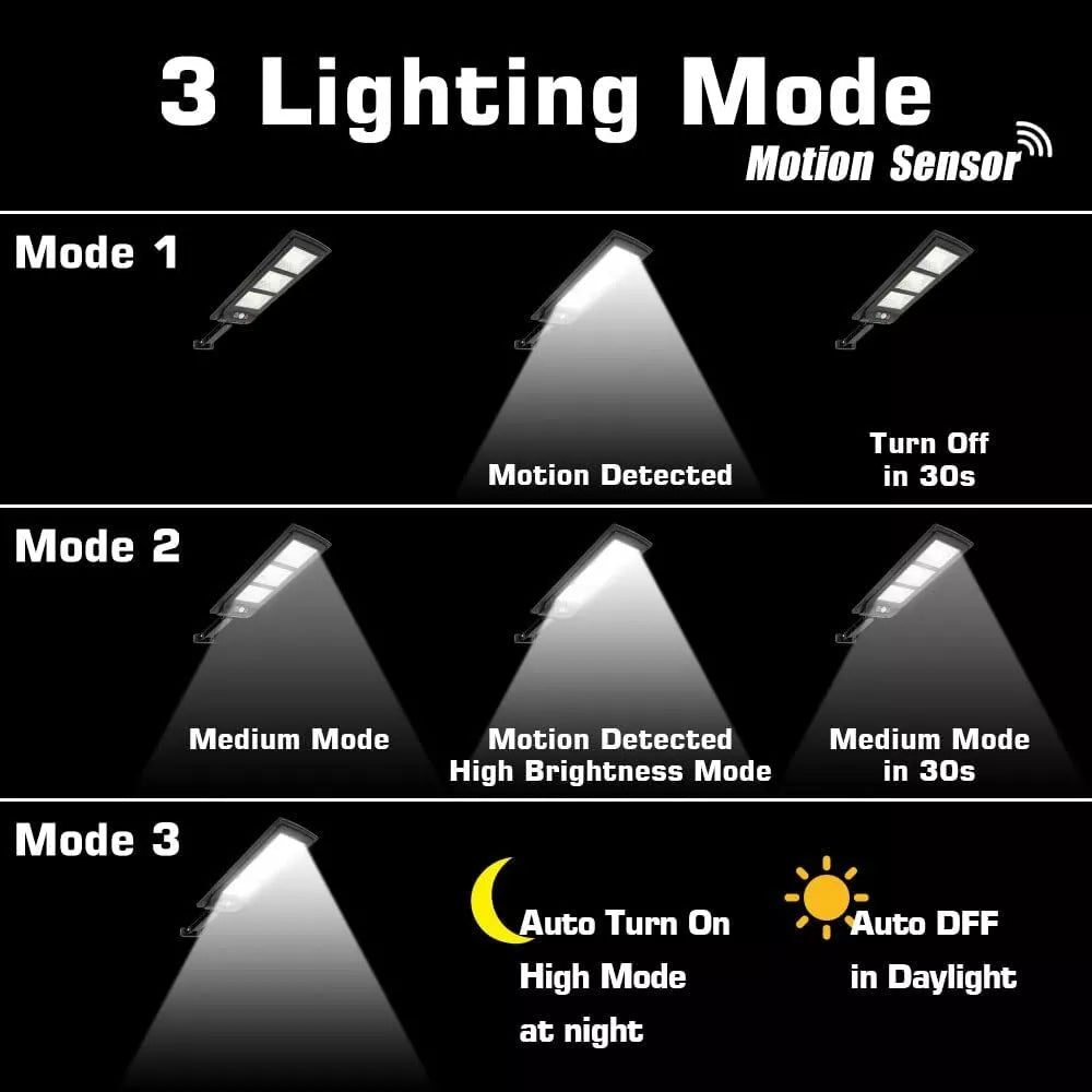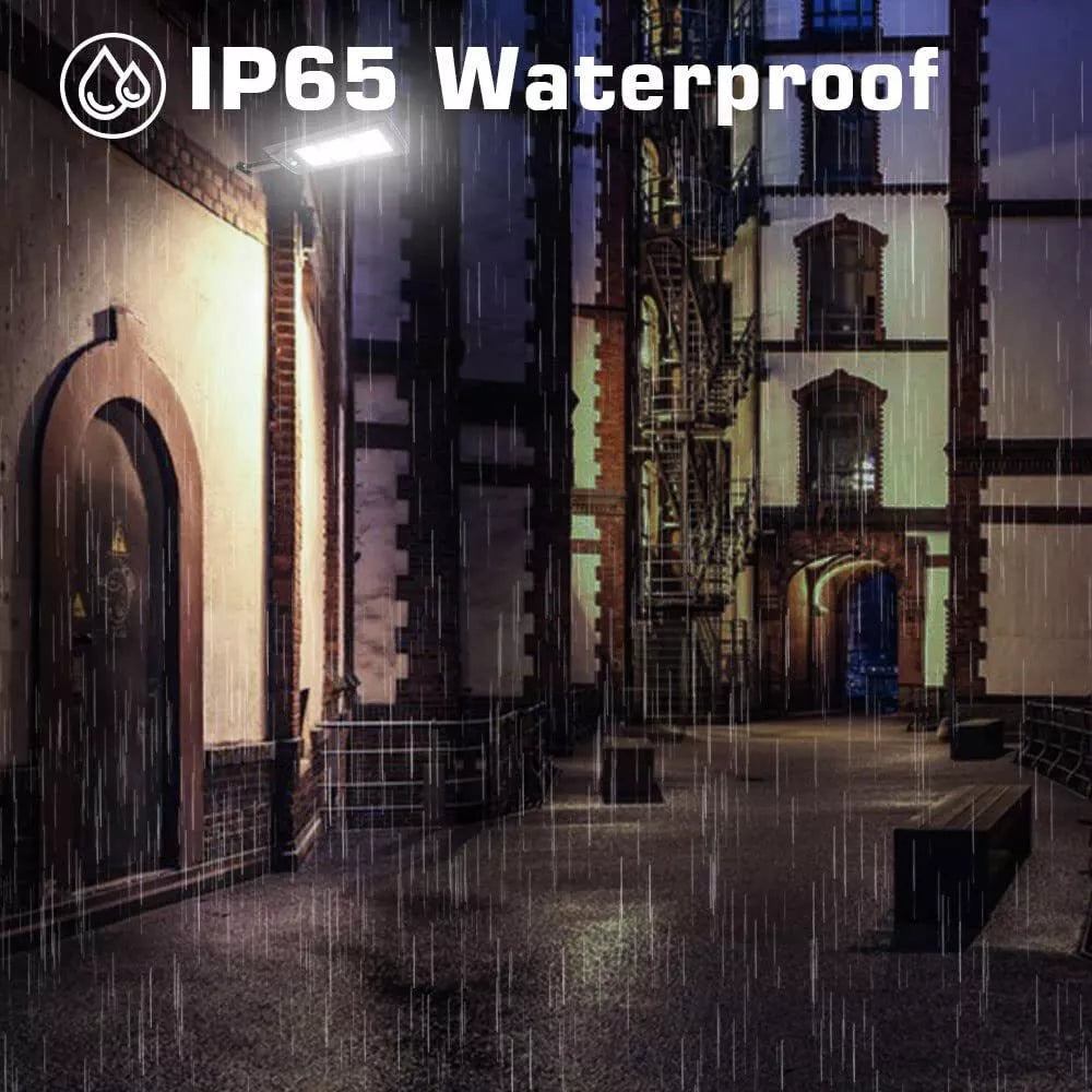 Illuminate your outdoor spaces efficiently with the Outdoor Solar Street Light Motion Sensor Commercial Flood Lamp. Designed for high-performance and reliability, this IP65 waterproof LED street light delivers powerful 8000 lumens of daylight-white brightness (5600–6400K). Featuring an intelligent motion sensor and dusk-to-dawn functionality, it automatically adjusts brightness to conserve energy and ensure continuous lighting throughout the night. Perfect for commercial and residential settings, this energy-saving solar lamp offers over 50,000 hours of lifespan, making it a long-lasting and eco-friendly choice for parking lots, gardens, pathways, and public areas. Built with durable materials and a sleek black finish, this solar floodlight ensures top-notch performance even in harsh weather conditions.