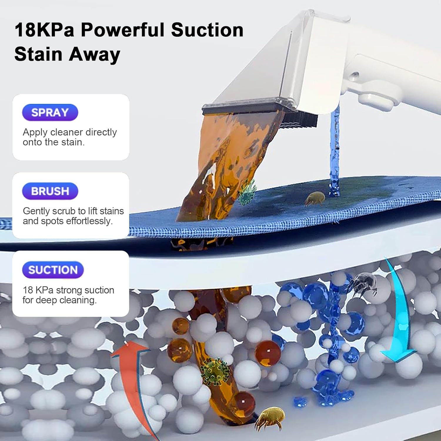 - Spray, Brush & Vacuum for Deep Stain Cleaning