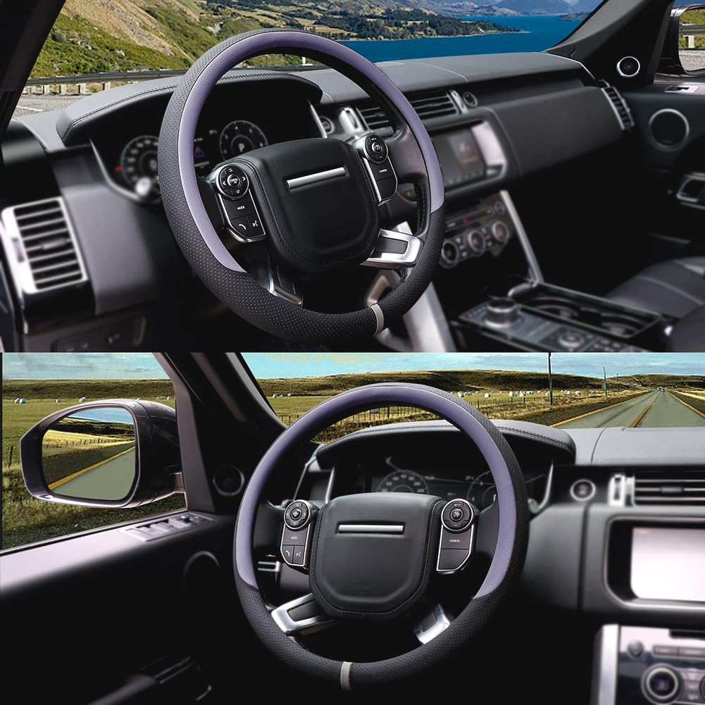 Our COFIT 16 Inch Breathable Leather Steering Wheel Cover is a premium automotive interior accessory designed to enhance comfort, control, and style. Crafted from durable microfiber leather with a breathable perforated surface, it provides a firm non-slip grip while ensuring ventilation during long drives. Suitable for 15.5–16 inch round steering wheels, this cover fits most cars, SUVs, and trucks. The luxurious purple finish adds a refined look, while the heat-flexible material allows for a snug, wrinkle-free fit that protects your steering wheel from wear, sweat, and UV damage.