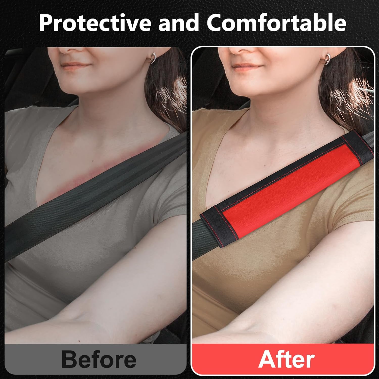 Our COFIT Car Seat Belt Pads are designed to provide exceptional comfort and protection during travel. Crafted from premium microfiber leather, these durable seatbelt covers effectively prevent chafing and irritation around the neck and collarbone area. The soft padding offers superior comfort for both adults and children, while the adjustable Velcro design ensures easy installation and removal. Suitable for cars, SUVs, jeeps, and even backpacks or luggage straps, these seatbelt protectors combine functionality with a stylish red and black finish to enhance any vehicle’s interior.