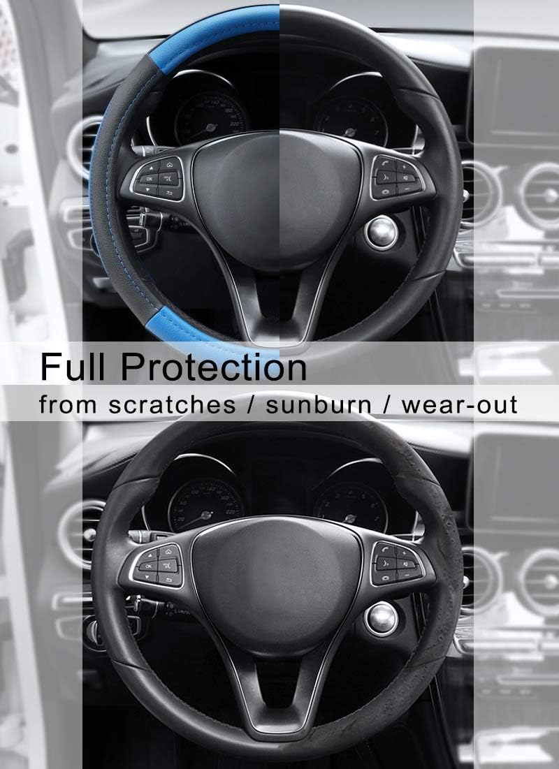 • 1 x COFIT Microfiber Leather Steering Wheel Cover (Blue and Black)