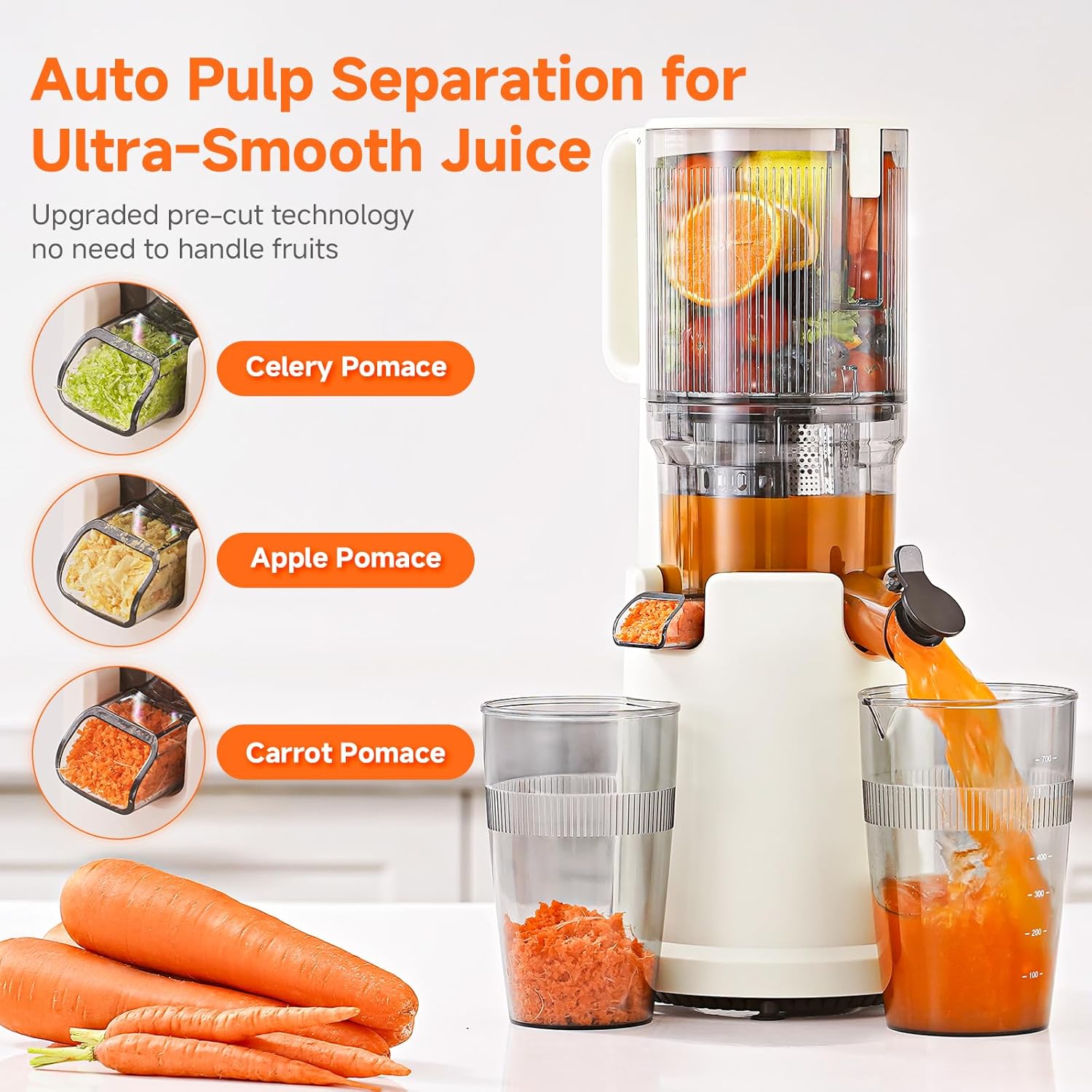 The slow cold press technology operates at 90 RPM, significantly reducing heat and oxidation for fresher, healthier juice with less foam and clogging. A triple filter system ensures smooth, pulp-free juice every time. With a 1.5L large capacity, you can prepare juice for the whole family in one go.