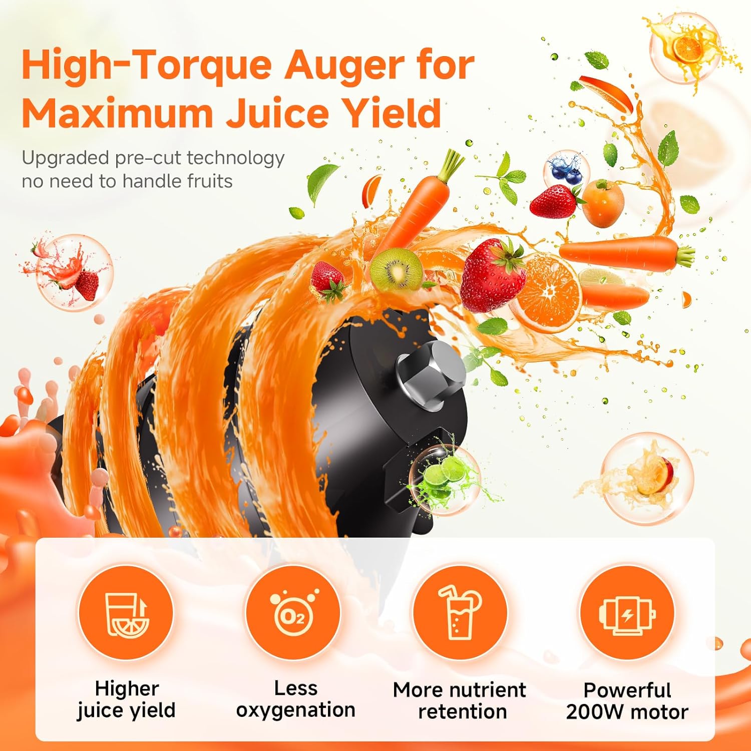 Upgrade your juicing routine with the Cold Press Juicer Machine, designed for maximum efficiency, safety, and nutrient retention. Featuring a 135mm extra-large feed chute, this juicer allows you to insert whole fruits and vegetables without pre-cutting, saving valuable time in the kitchen. Its 200W powerful motor combined with an 8-stage auger system ensures maximum juice extraction while maintaining vitamins, minerals, and natural flavors.
