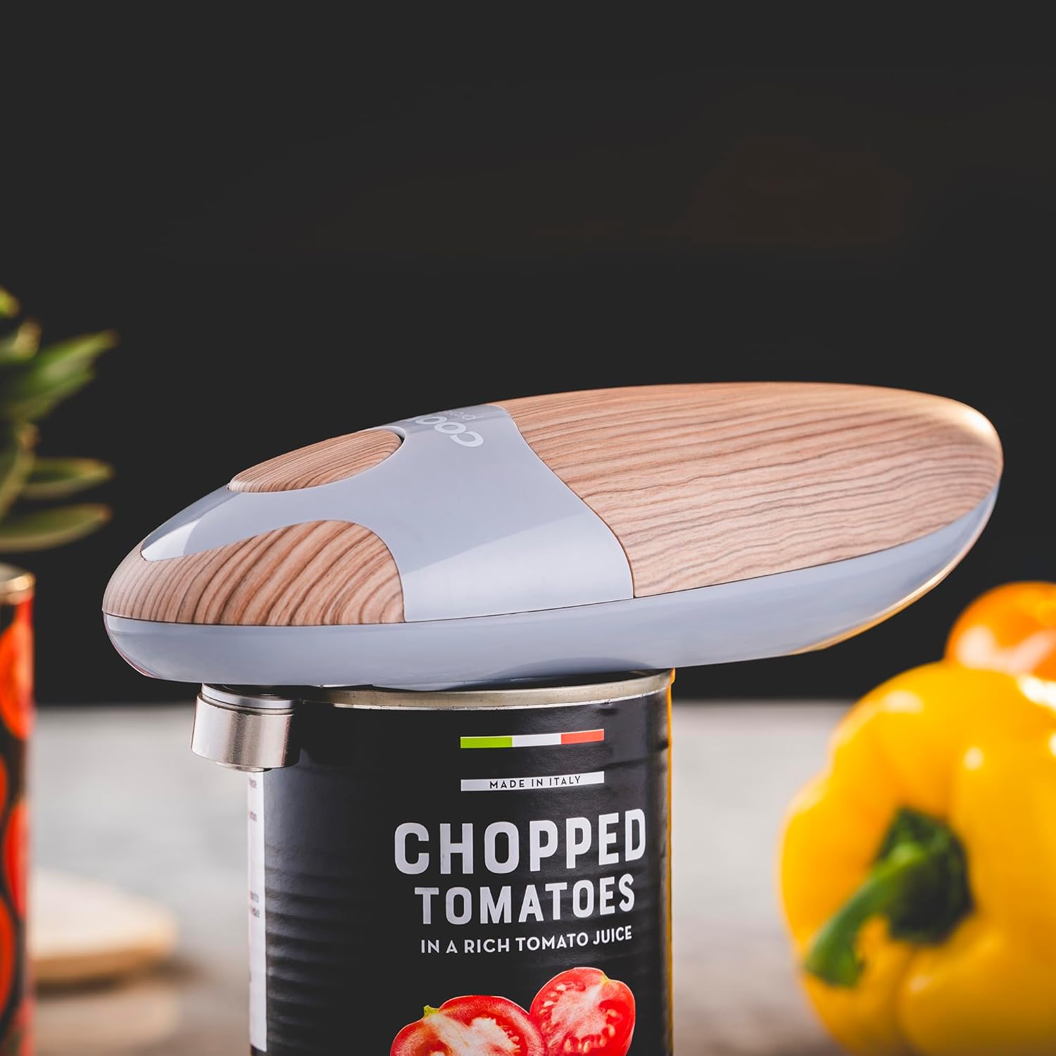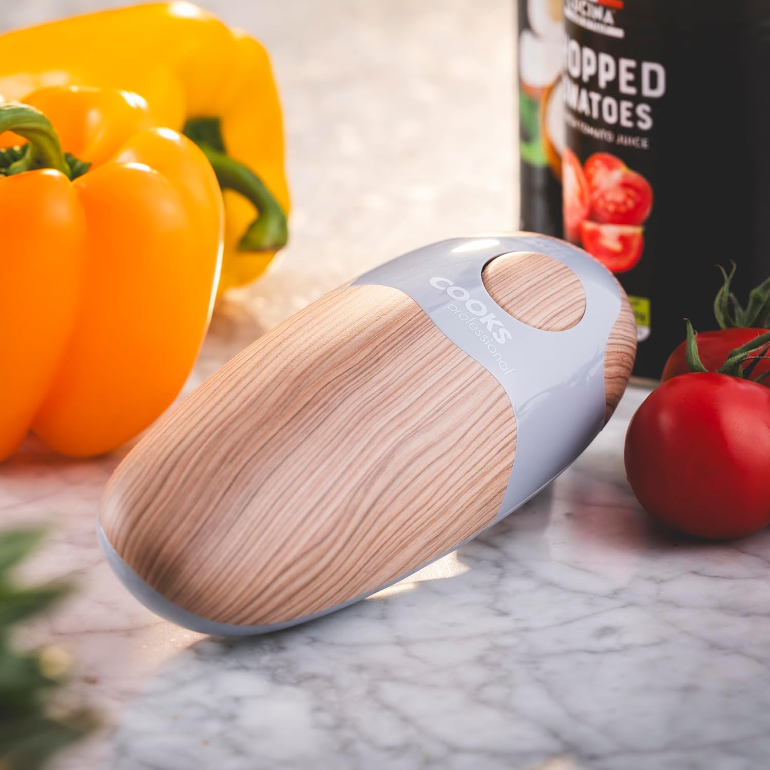 Our Cooks Professional Electric Can Opener in Nordic Grey is designed to make can opening effortless and safe, especially for users with arthritic or weak hands. With its one-touch operation, this cordless tin opener spins around the can automatically, providing a clean, smooth edge every time. The built-in magnet lifts lids safely, keeping your kitchen tidy and free from hazards. Compact yet stylish, it fits seamlessly into any kitchen while offering maximum convenience with cordless operation powered by four AA batteries. Ideal for hands-free use, this electric can opener is perfect for anyone looking for efficiency, safety, and ease in the kitchen.
