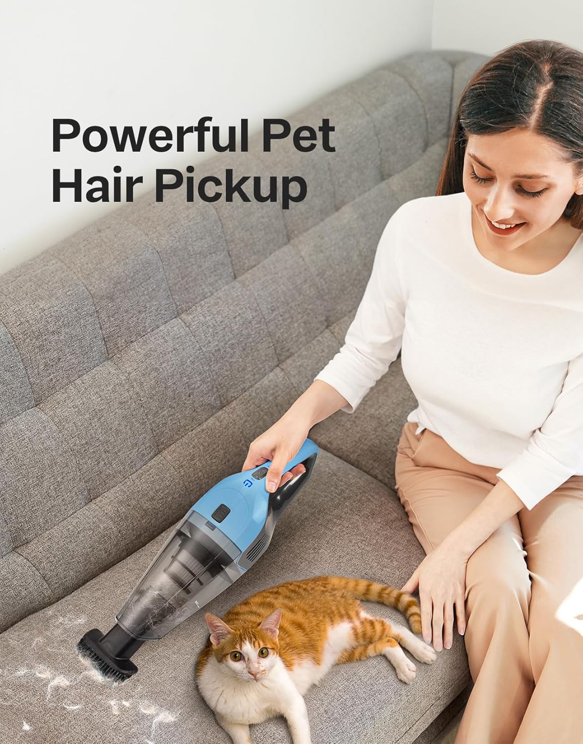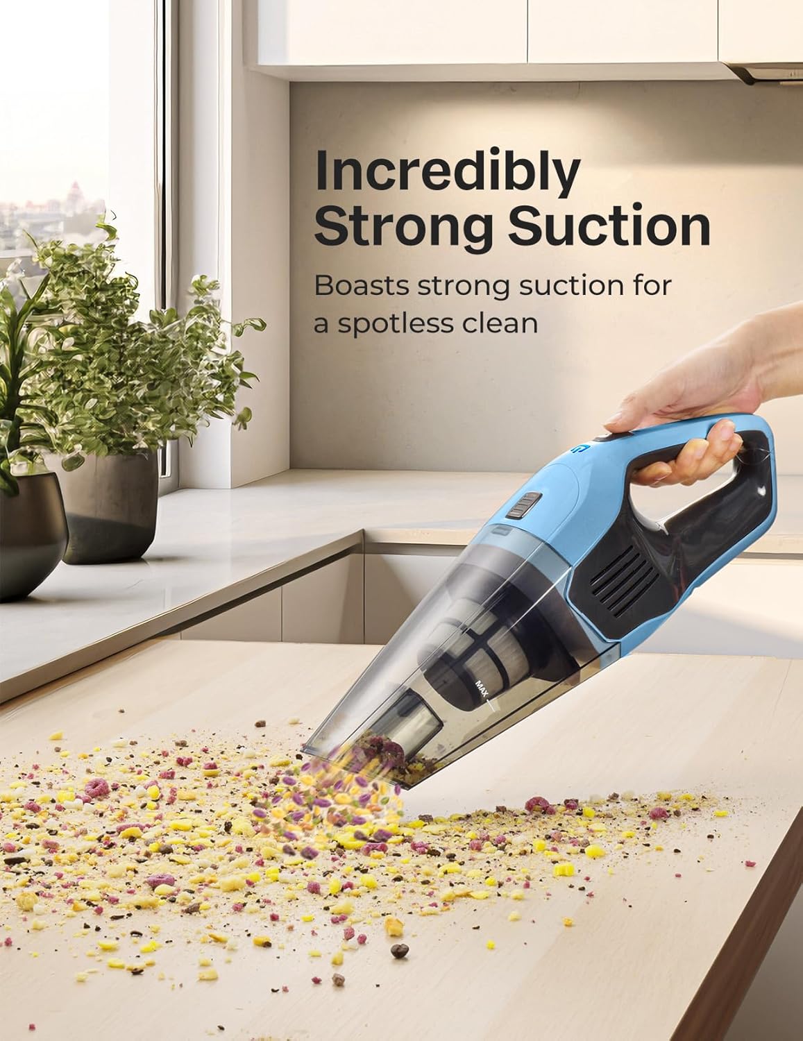 Weighing only 1.92 pounds, the portable handheld vacuum is easy to carry anywhere — ideal for elderly users, families, and children. Designed for comfort and effortless one-hand operation.