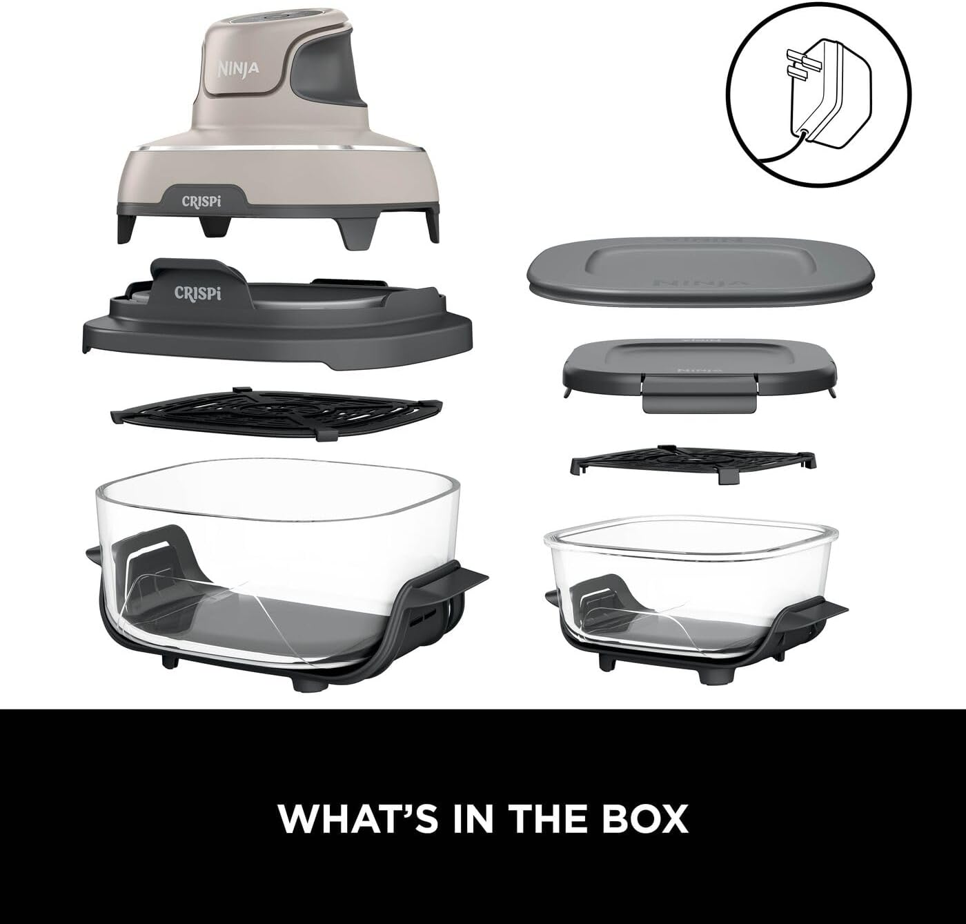 Special Features | Portable, 4 Cooking Functions, Air Fry, Roast, Keep Warm, Recrisp, 2 Glass Cooking Containers, 2 Non-Stick Crisper Plates, 2 Storage Lids, Dishwasher Safe Parts |