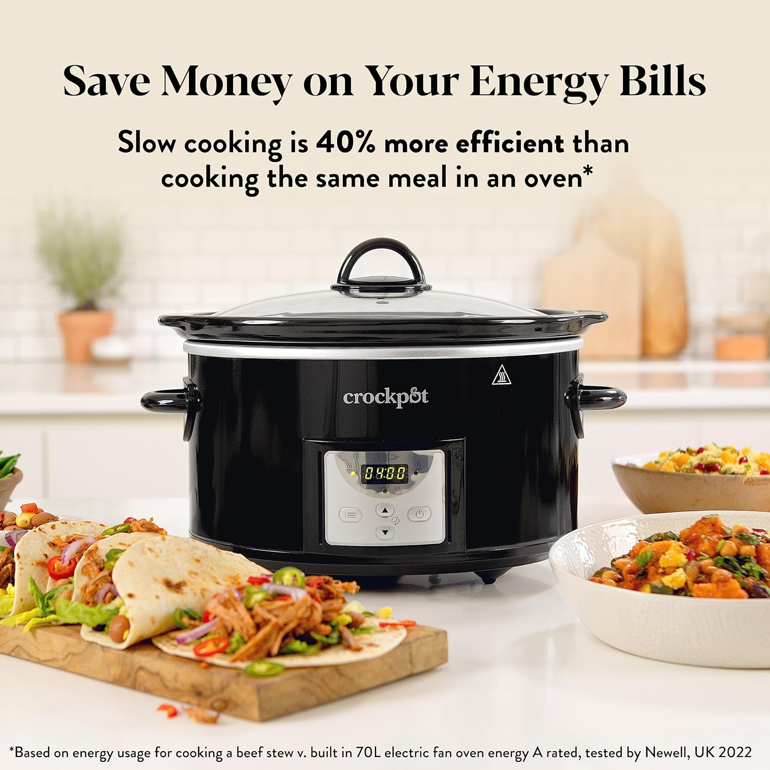 Our Crockpot Digital Slow Cooker offers easy, hands-free cooking for families of 3-4. With a 3.5L capacity, it’s ideal for soups, stews, casseroles, and more. The programmable countdown timer ensures meals are ready when you are, while the sleek black design complements any kitchen. Designed for convenience, it comes with a UK 3-pin plug, making setup simple and safe. Enjoy tender, flavorful meals every time with minimal effort.