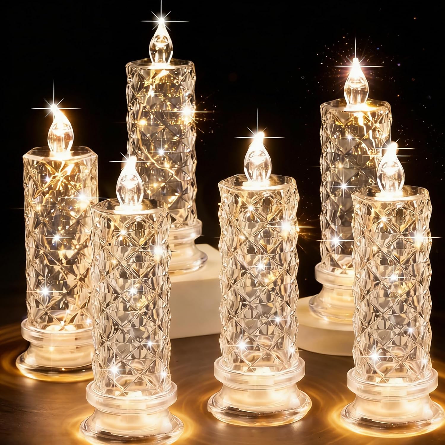 This crystal LED flameless candle set features elegant diamond-cut glass holders designed to reflect and refract light like sparkling starlight. Crafted with high-transparency crystal material, these candles enhance any space even when unlit and transform instantly into a luxurious ambient light source once illuminated.